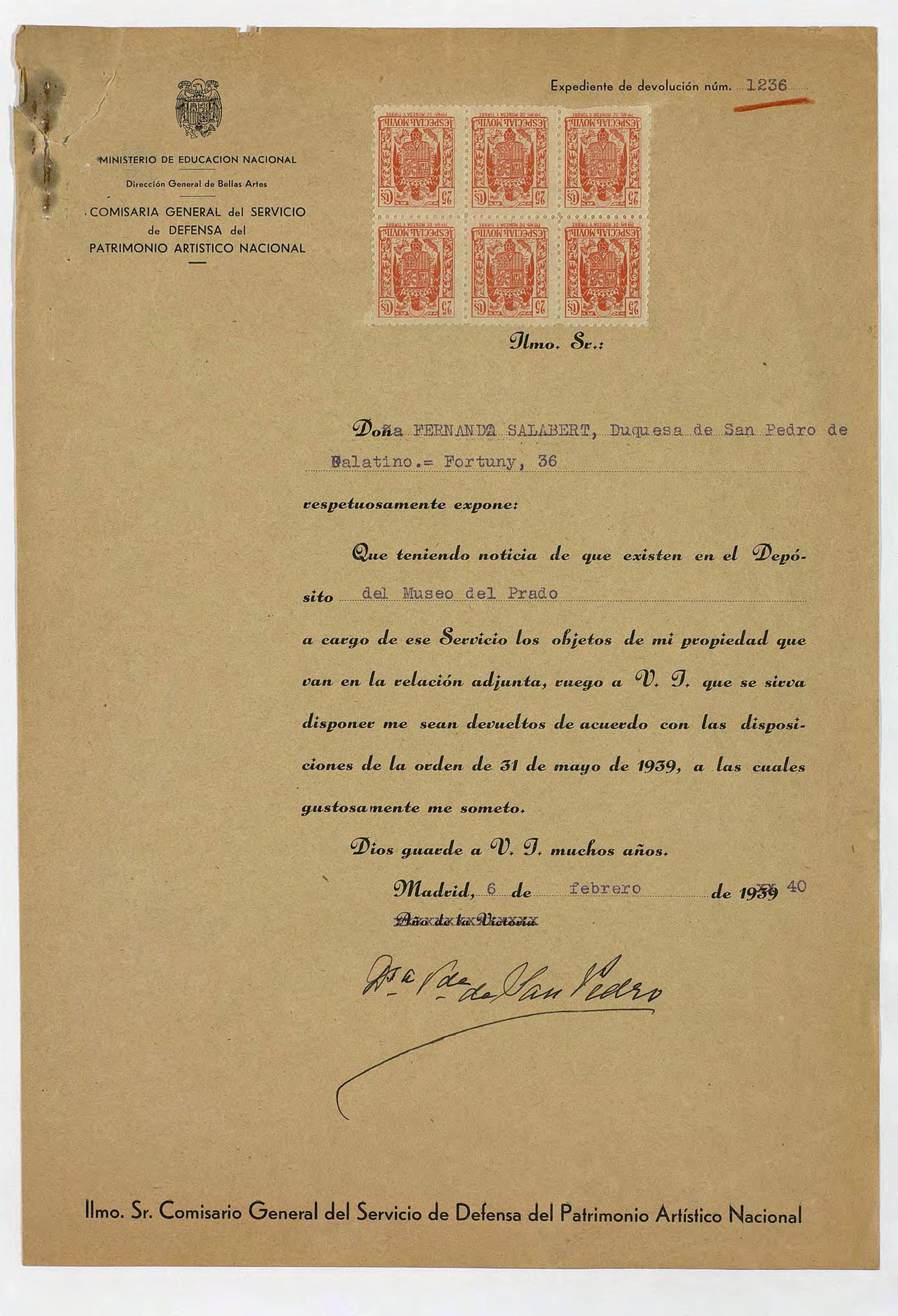 Expediente de devolución de Fernanda Salabert, duquesa viuda de San Pedro de Galatino