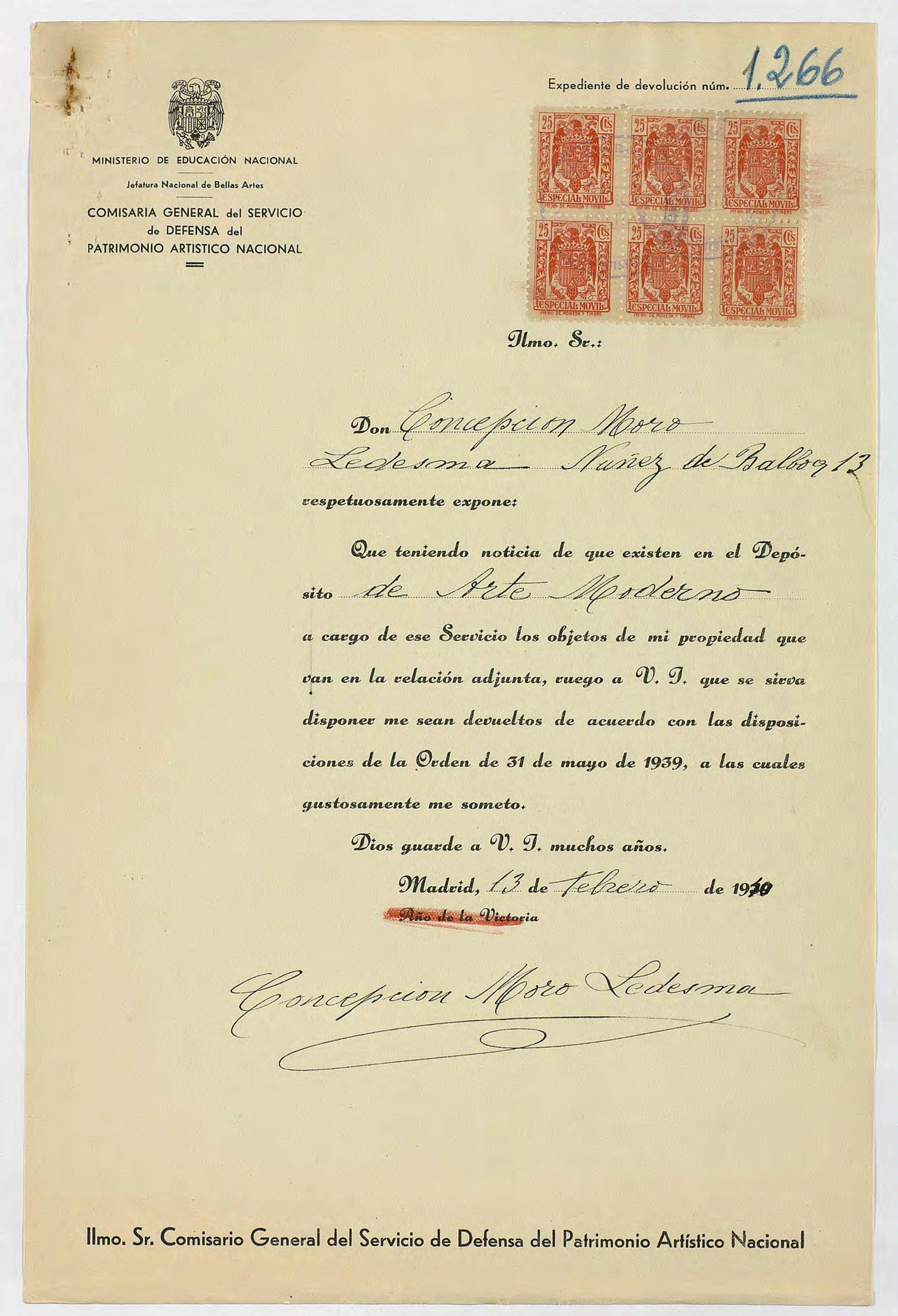 Expediente de devolución de Concepción Moro Ledesma