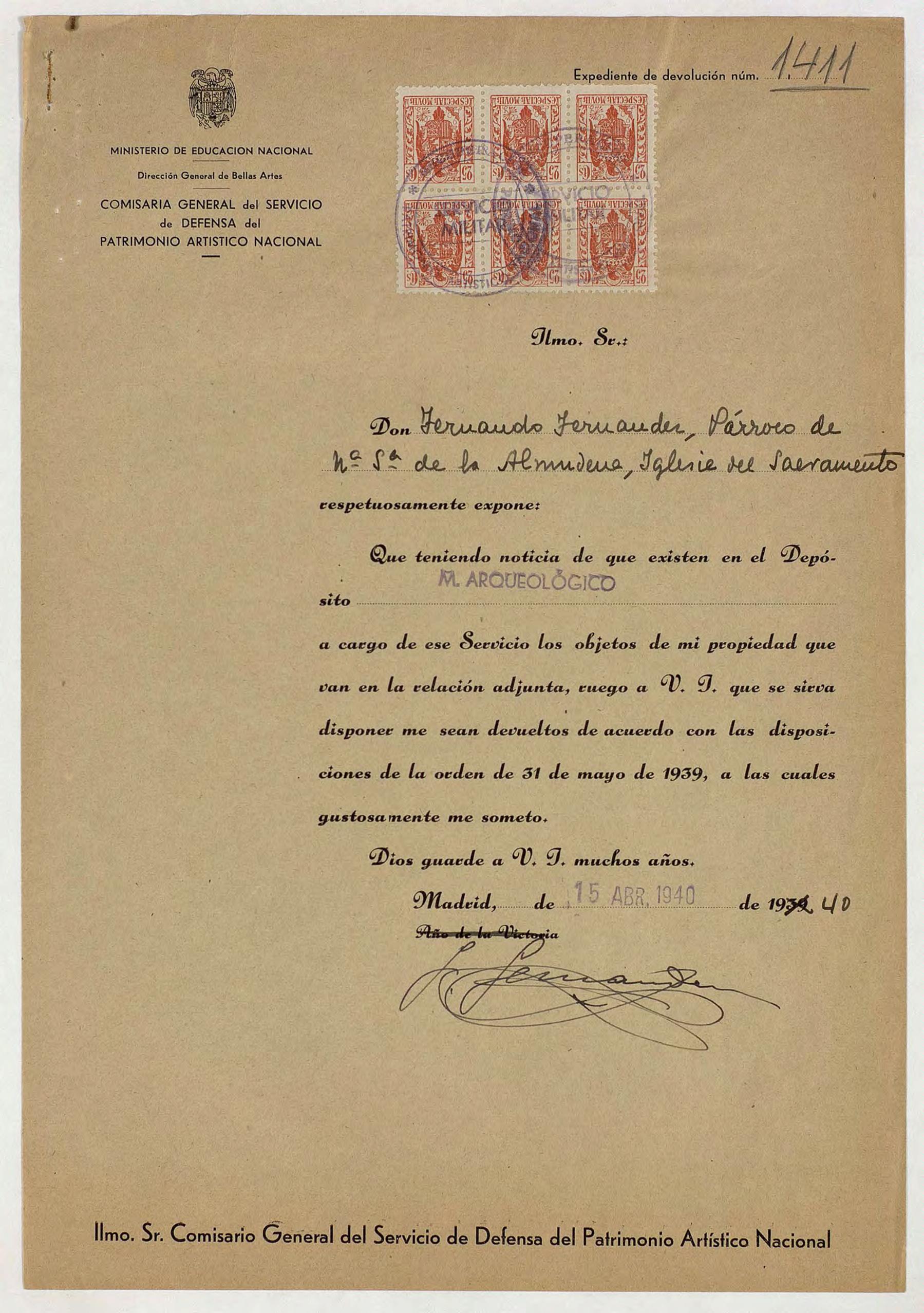 Expediente de devolución de la Iglesia del Sacramento (Nuestra Señora de la Almudena)