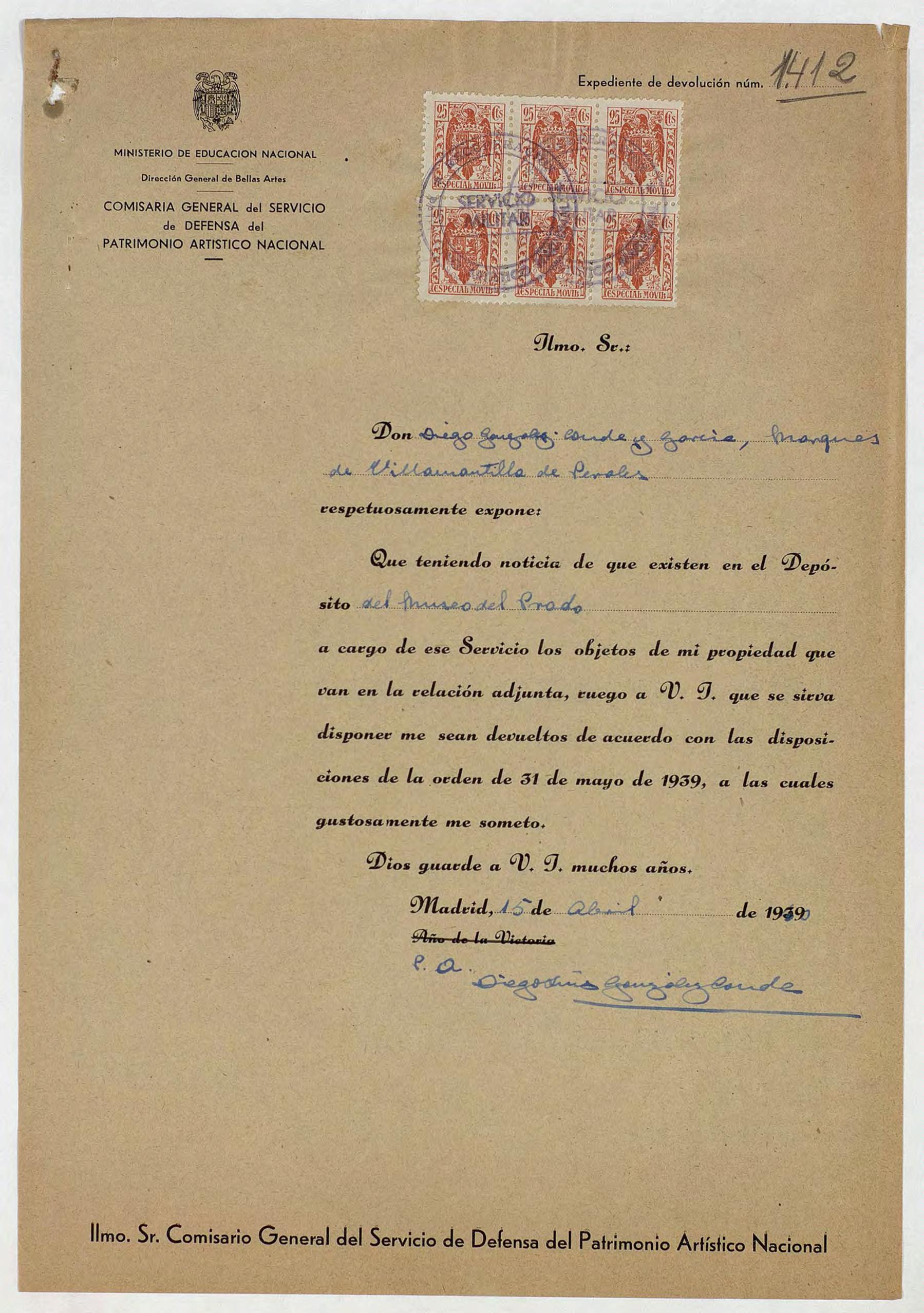 Expediente de devolución de Diego González Conde, marqués de Villamantilla de Perales