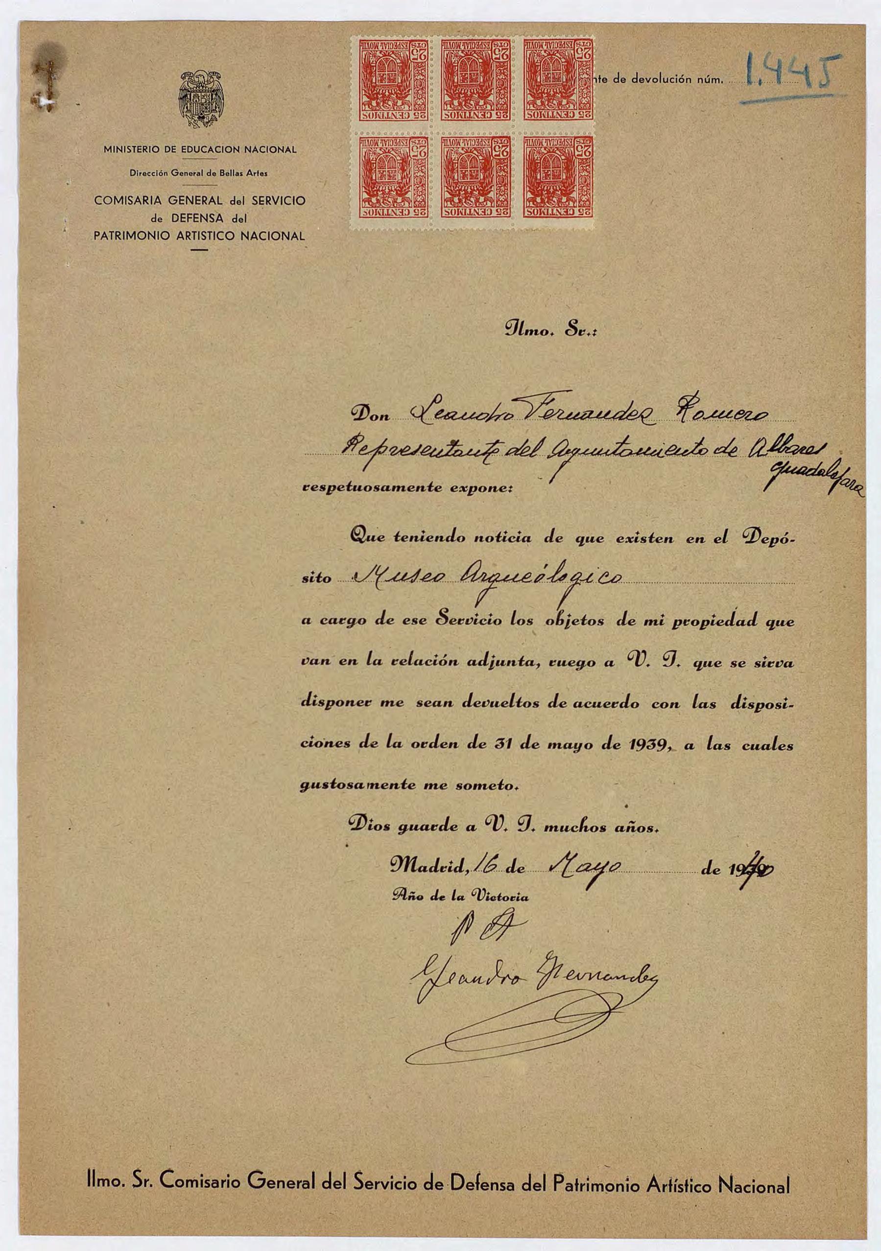 Expediente de devolución del Ayuntamiento de Albares (Guadalajara)