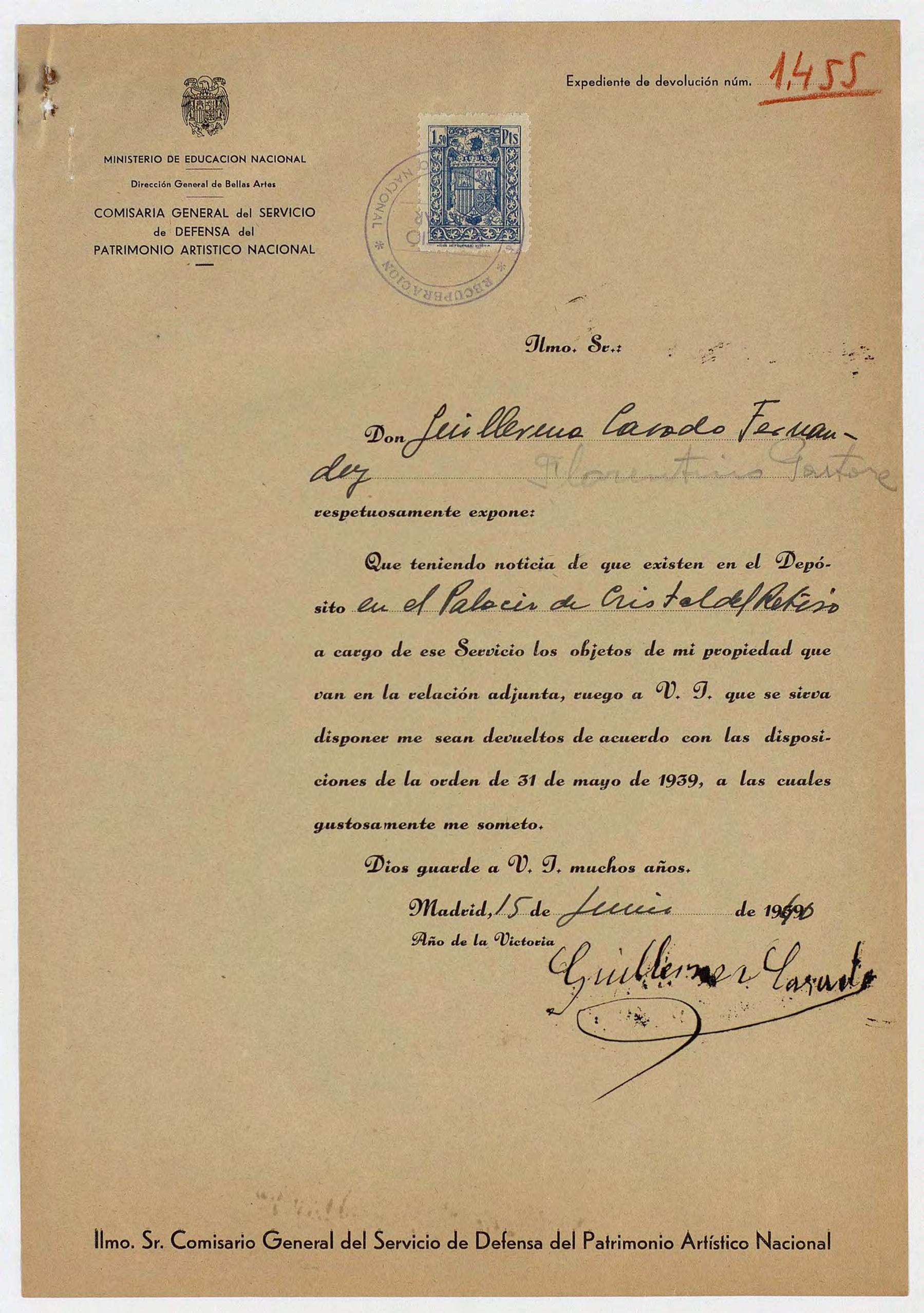 Expediente de devolución de Florentino Pastora / Guillerma Casado Fernández