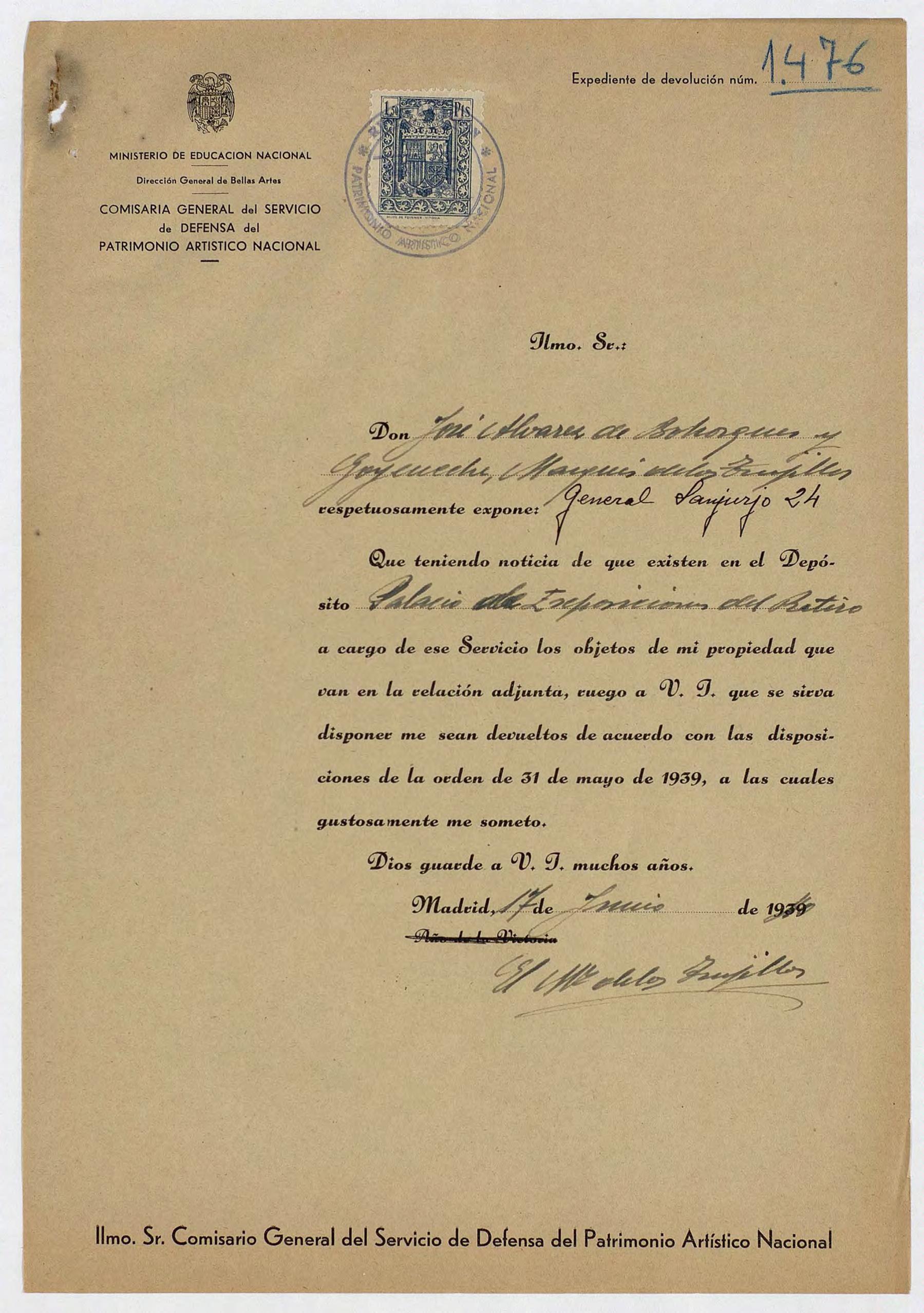 Expediente de devolución de José Álvarez de Bohorques y Goyeneche, marqués de los Trujillos