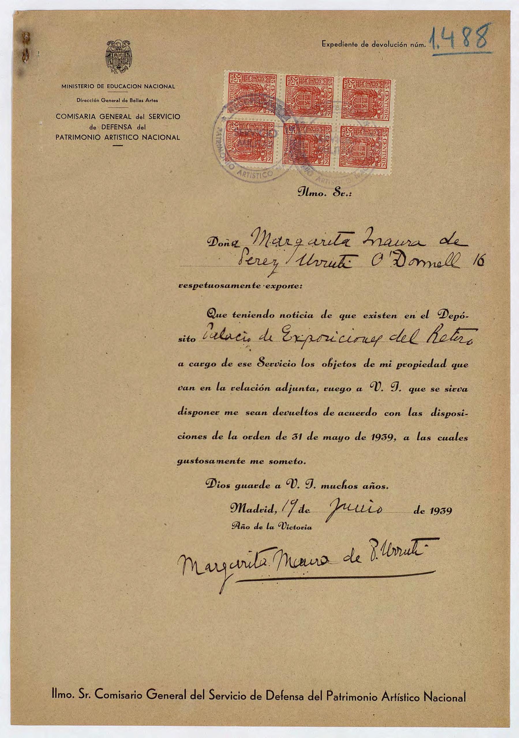 Expediente de devolución de Margarita Maura de Pérez Urruti