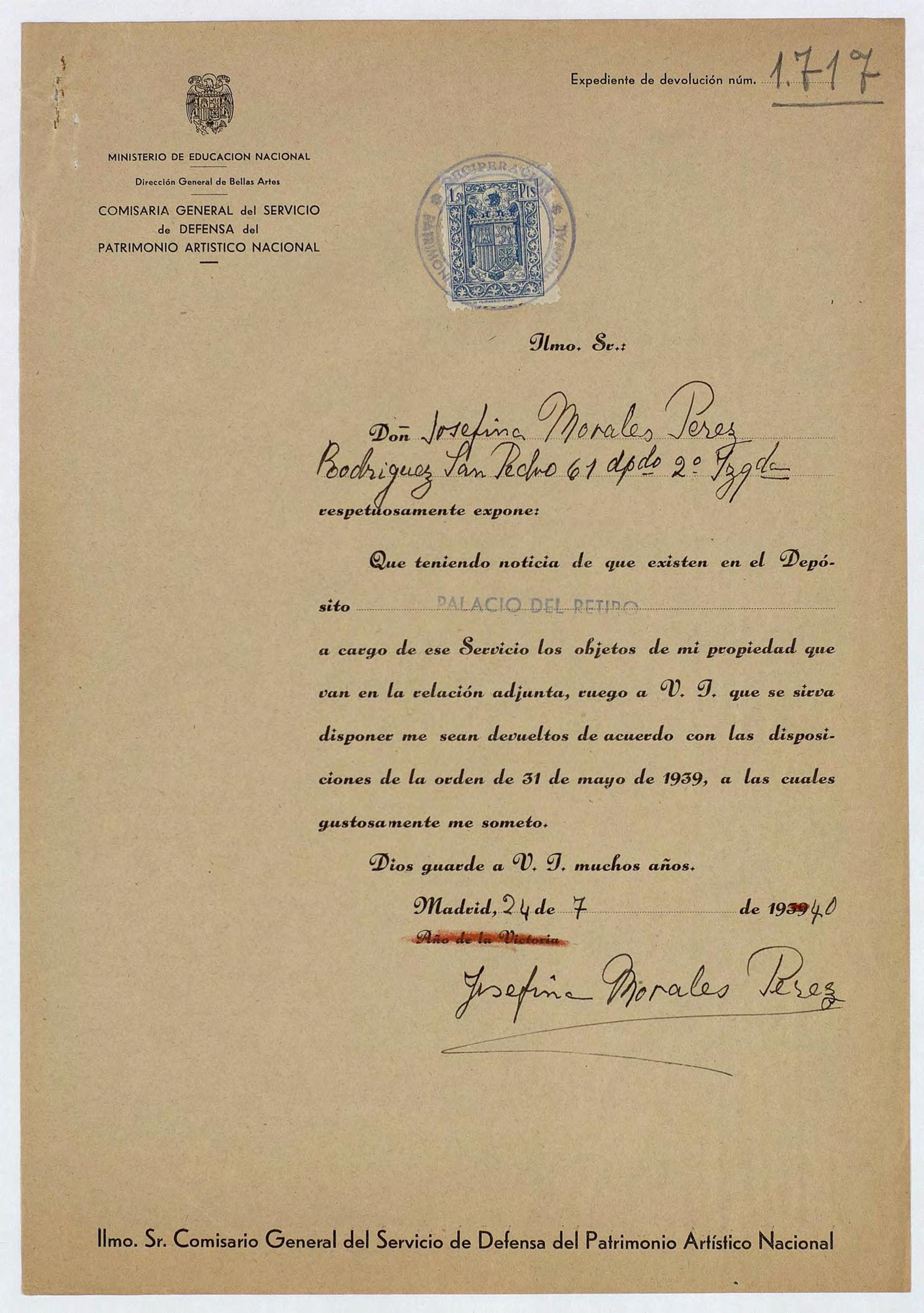 Expediente de devolución de Josefina Morales Pérez