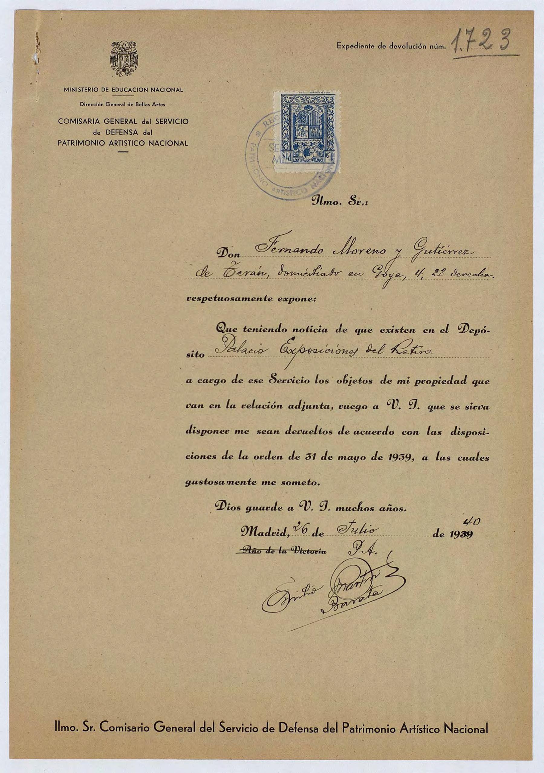 Expediente de devolución de Fernando Moreno y Gutiérrez