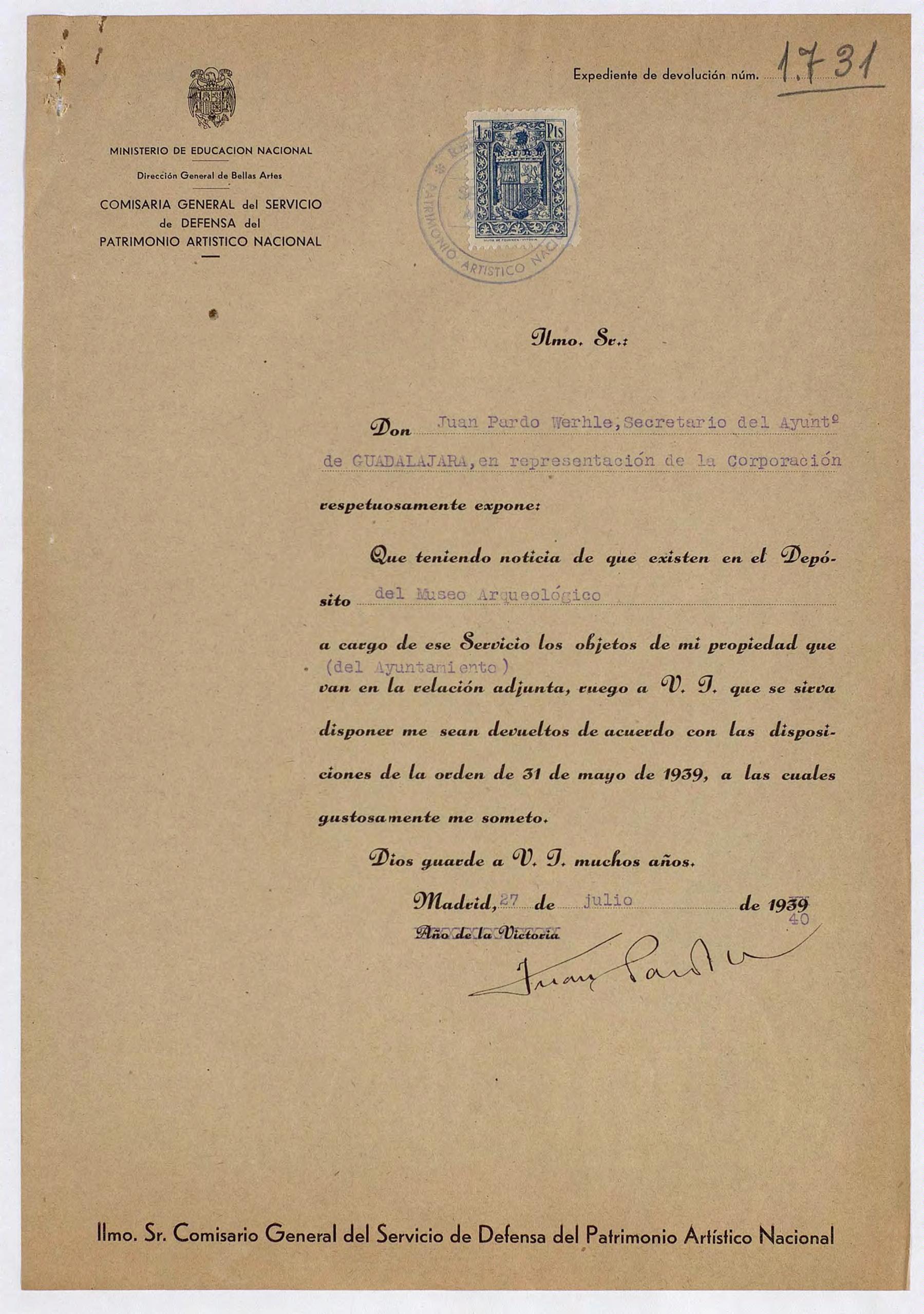 Expediente de devolución del Ayuntamiento de Guadalajara