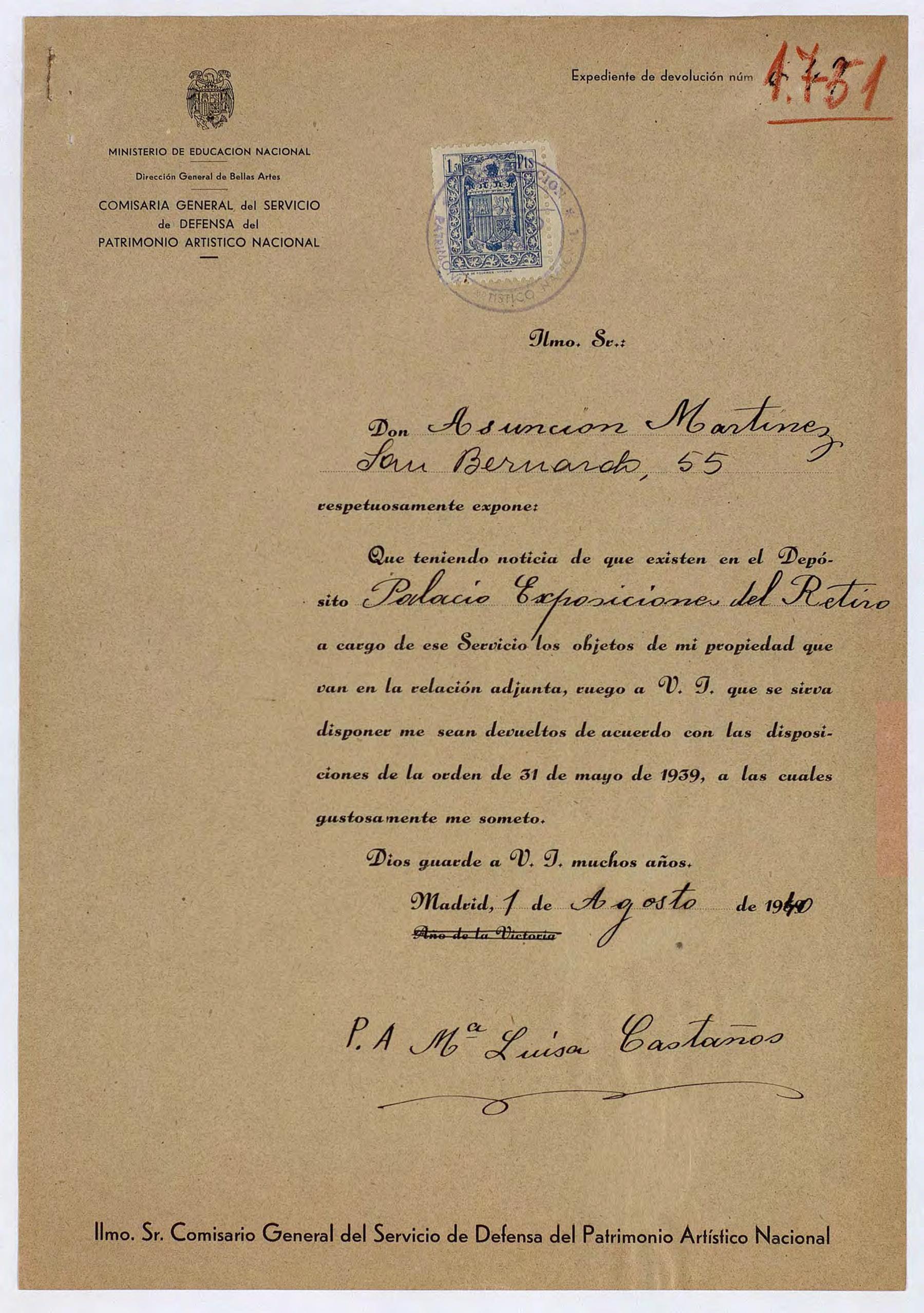 Expediente de devolución de Asunción Martínez, viuda de Castaños