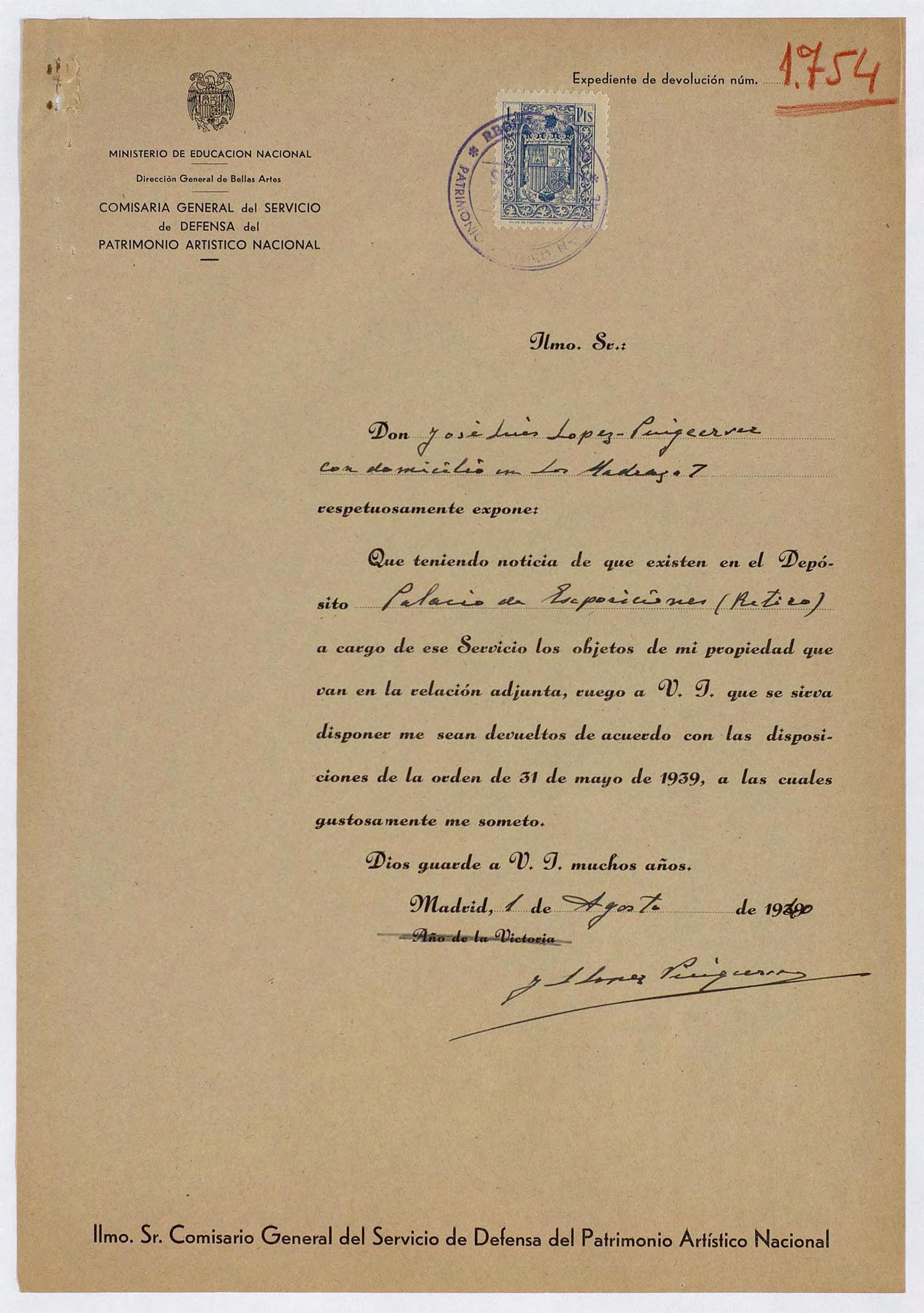 Expediente de devolución de José Luis López Puigcerver, marqués de Guadalerzas