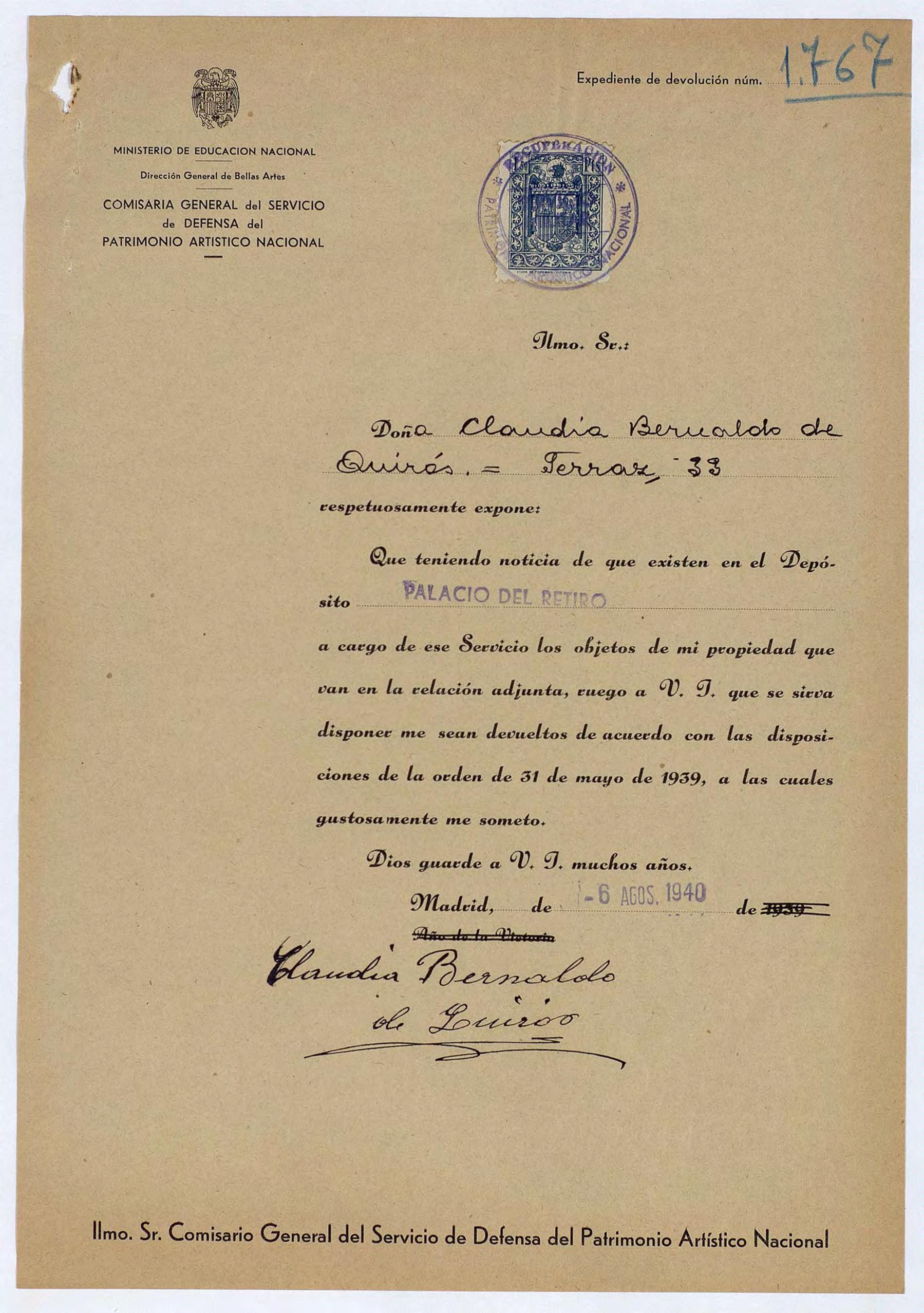 Expediente de devolución de Claudia Bernaldo de Quirós
