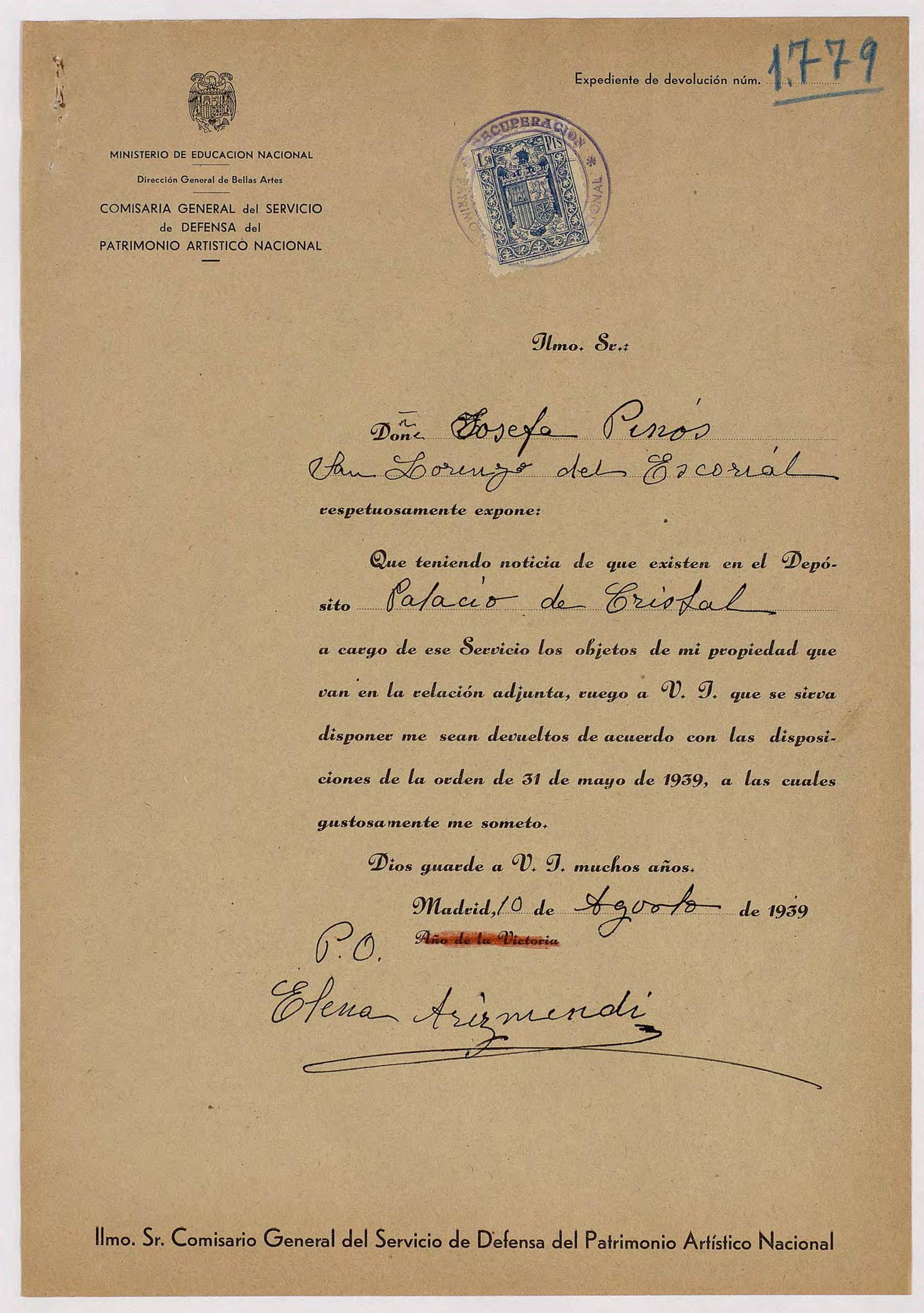 Expediente de devolución de Josefa Pinós