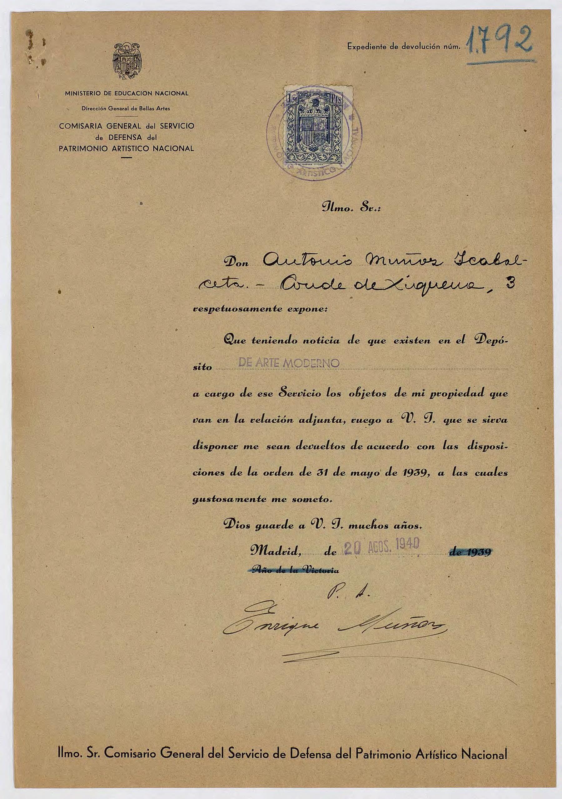 Expediente de devolución de Antonio Muñoz Icabalceta