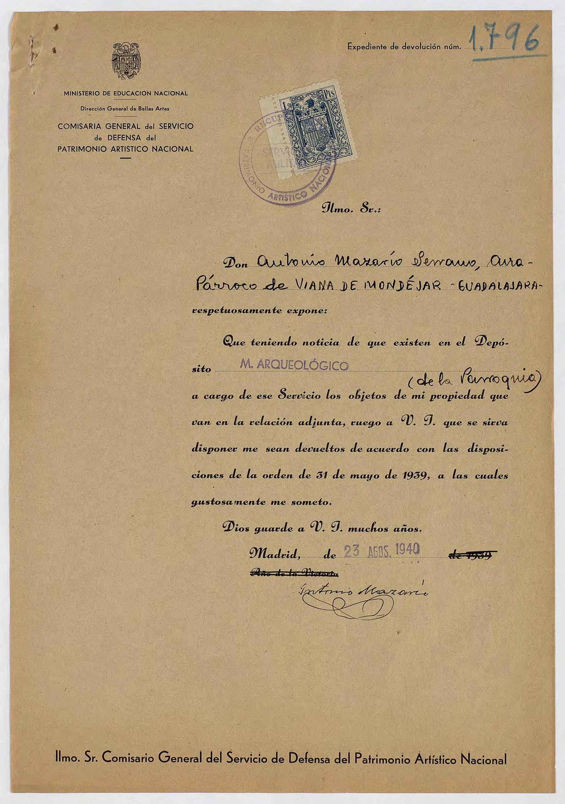 Expediente de devolución del Ayuntamiento de Viana de Mondéjar (Guadalajara)
