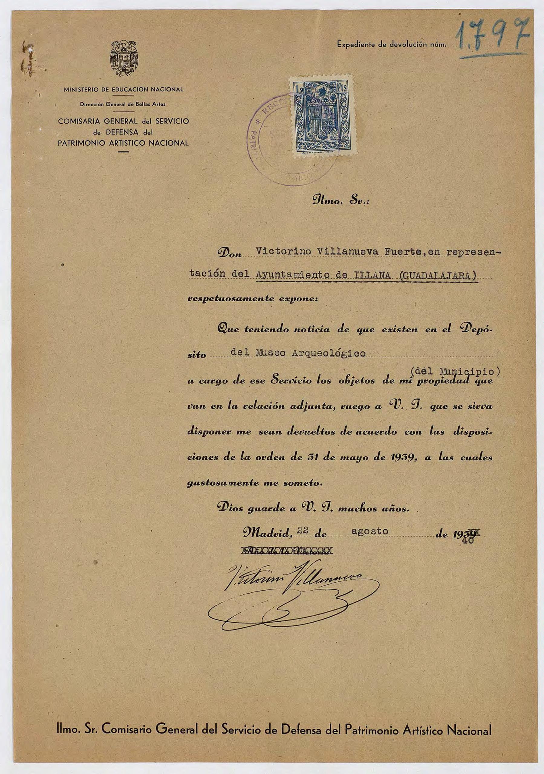 Expediente de devolución del Ayuntamiento de Illana (Guadalajara)