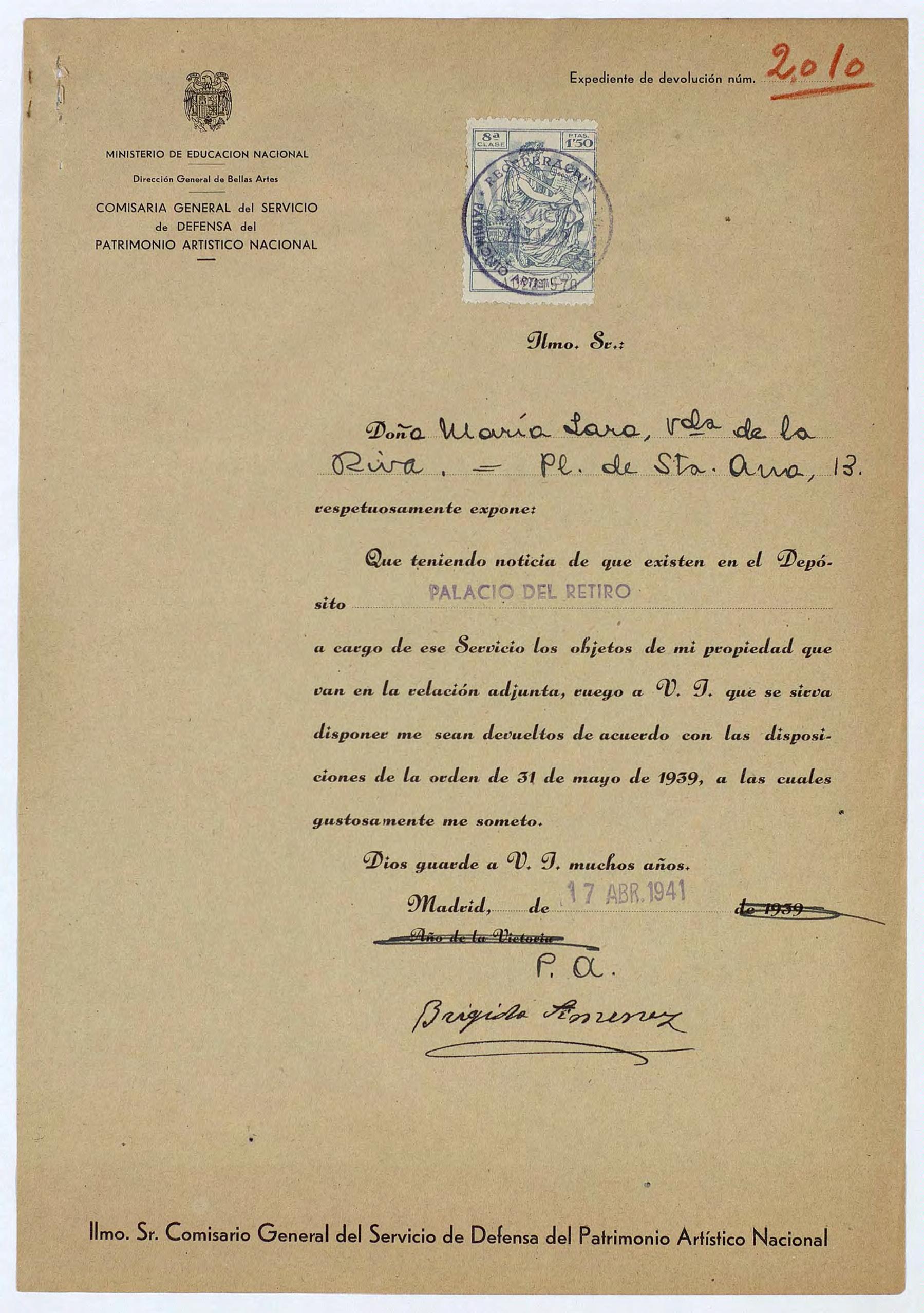 Expedientes de devolución de obras de arte