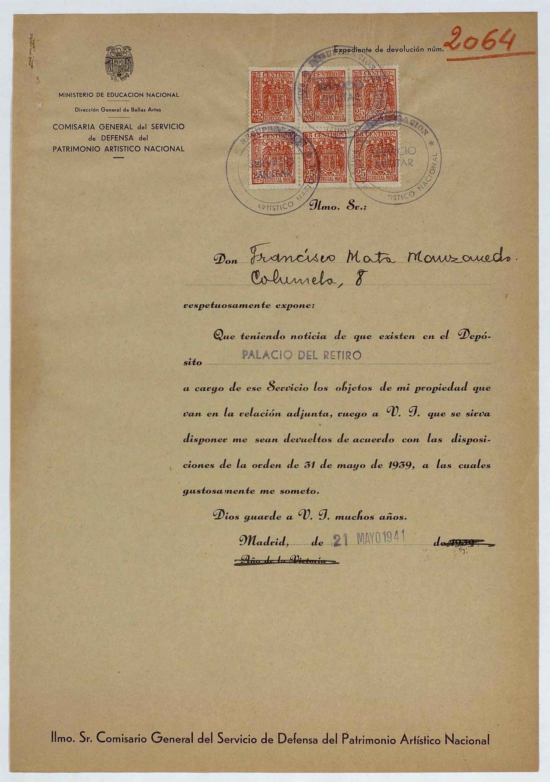 Expediente de devolución de Francisco Mata Manzanedo