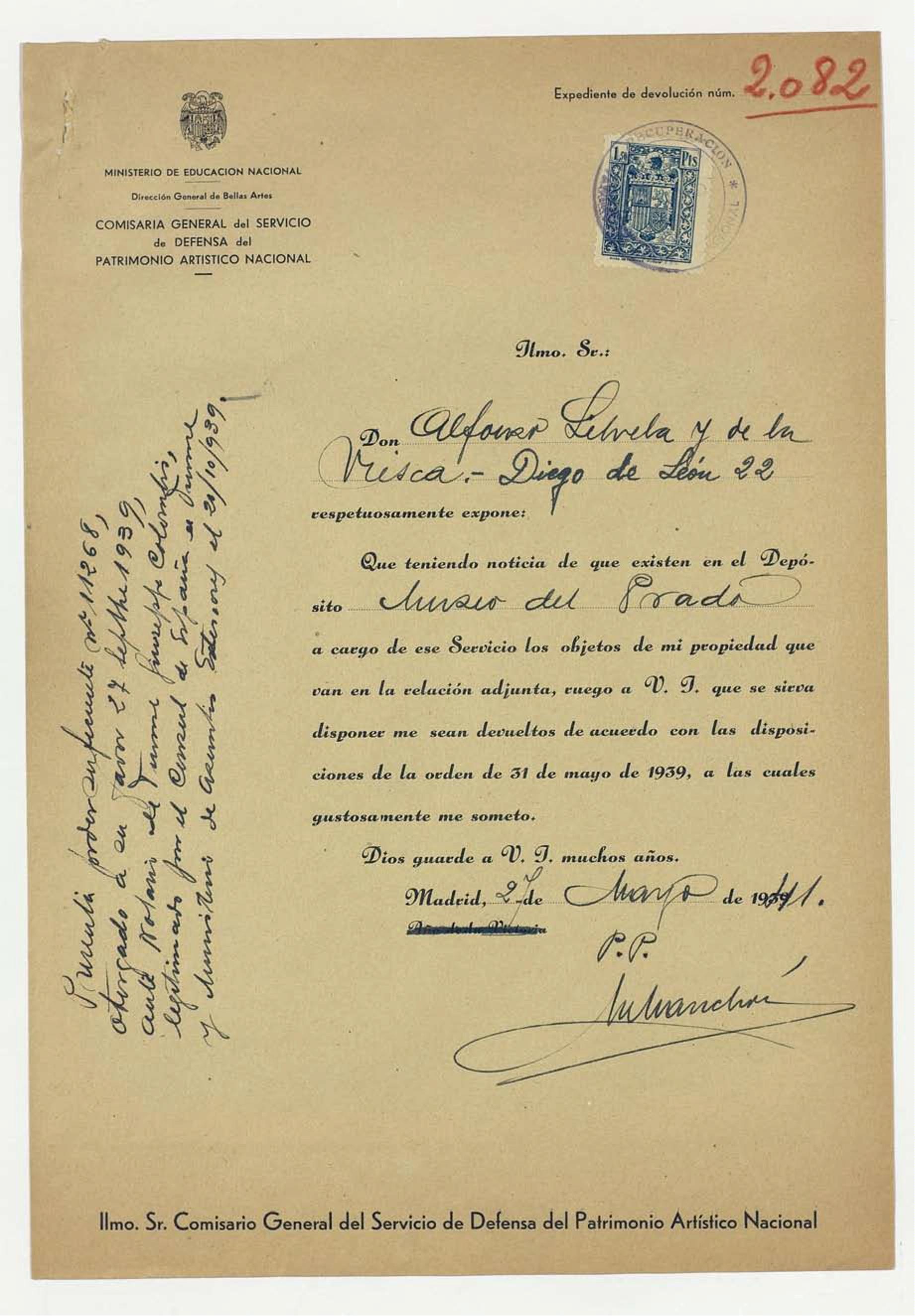 Expediente de devolución de Alfonso Silvela de la Viesca
