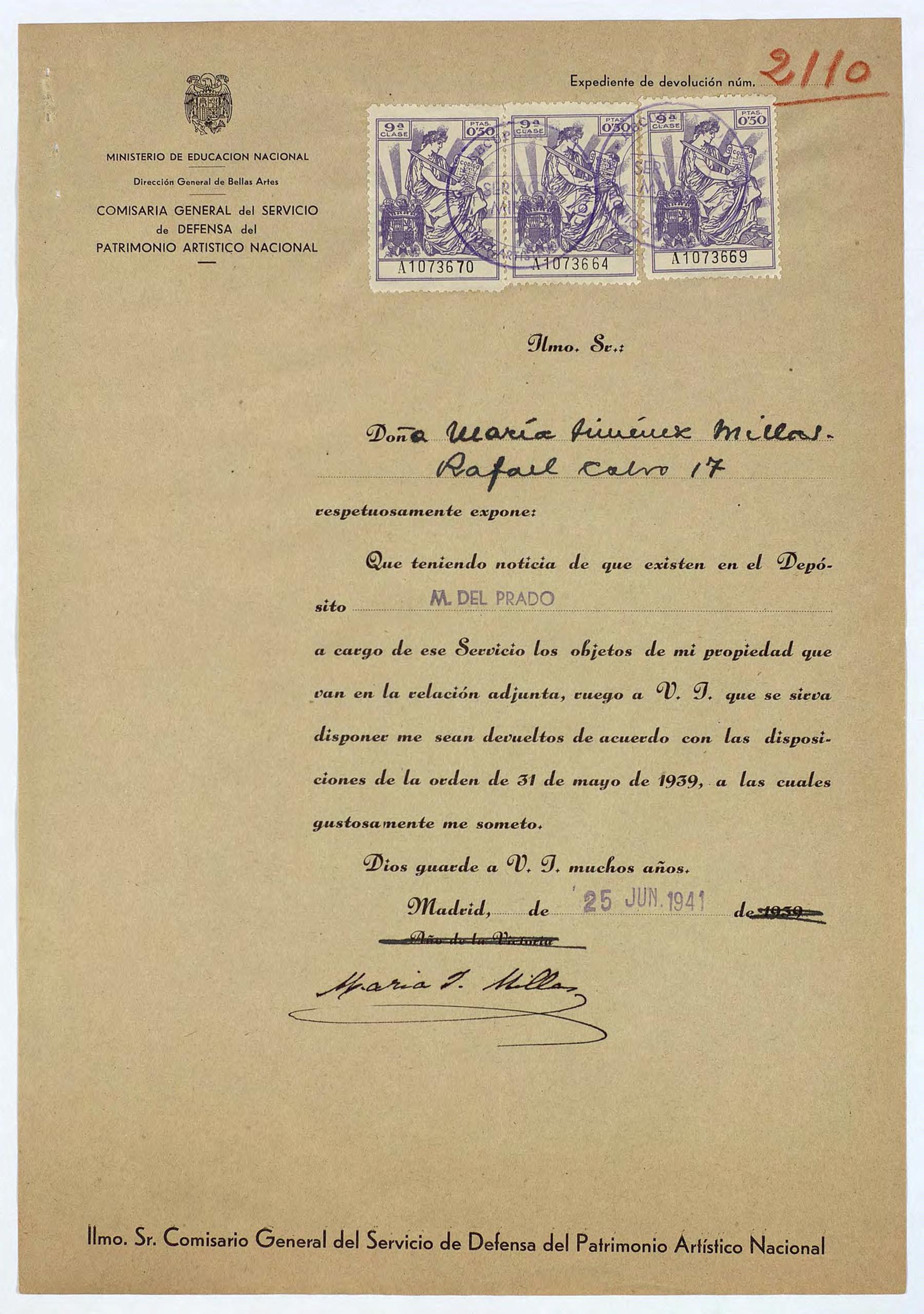 Expediente de devolución de María Jiménez Millas