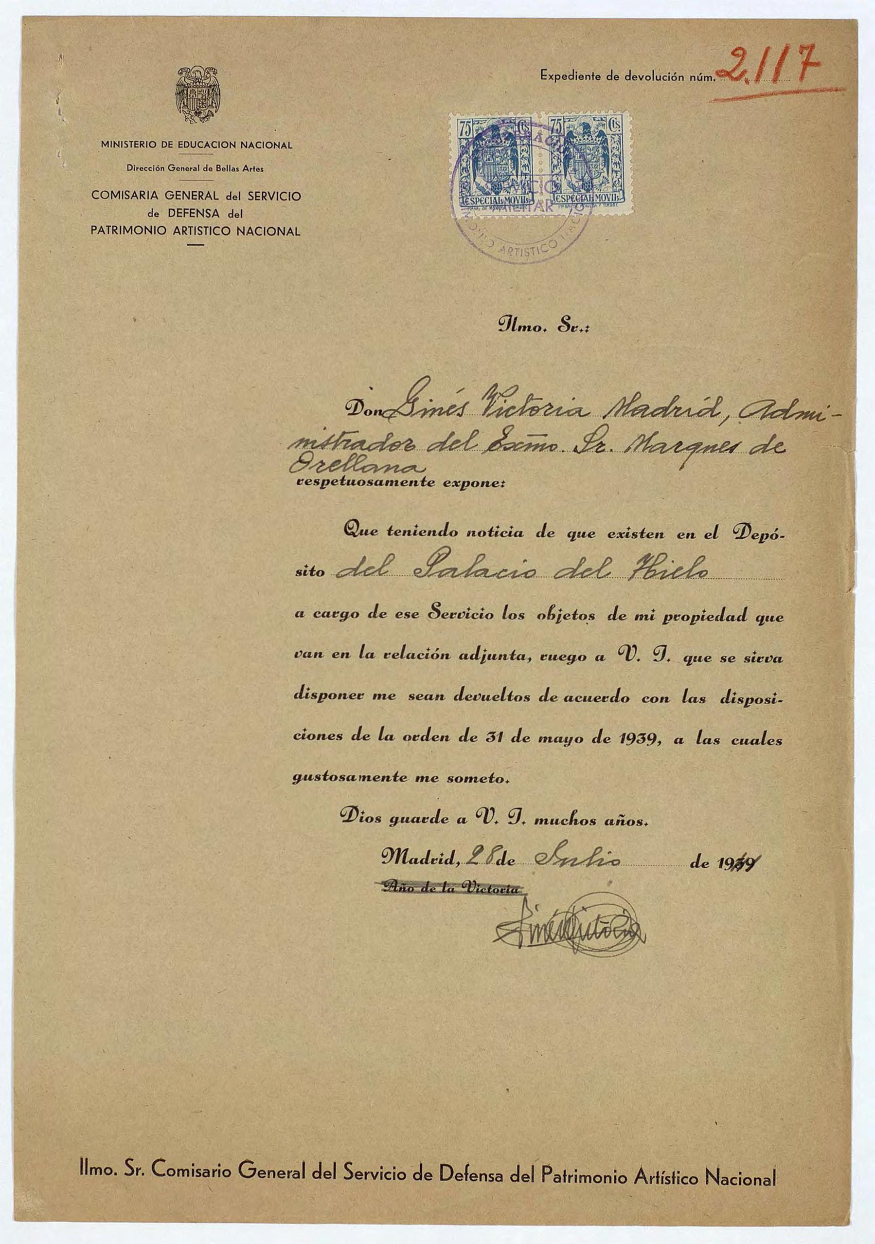 Expediente de devolución de Jaime Díez de Rivera y Figueroa, marqués de Orellana