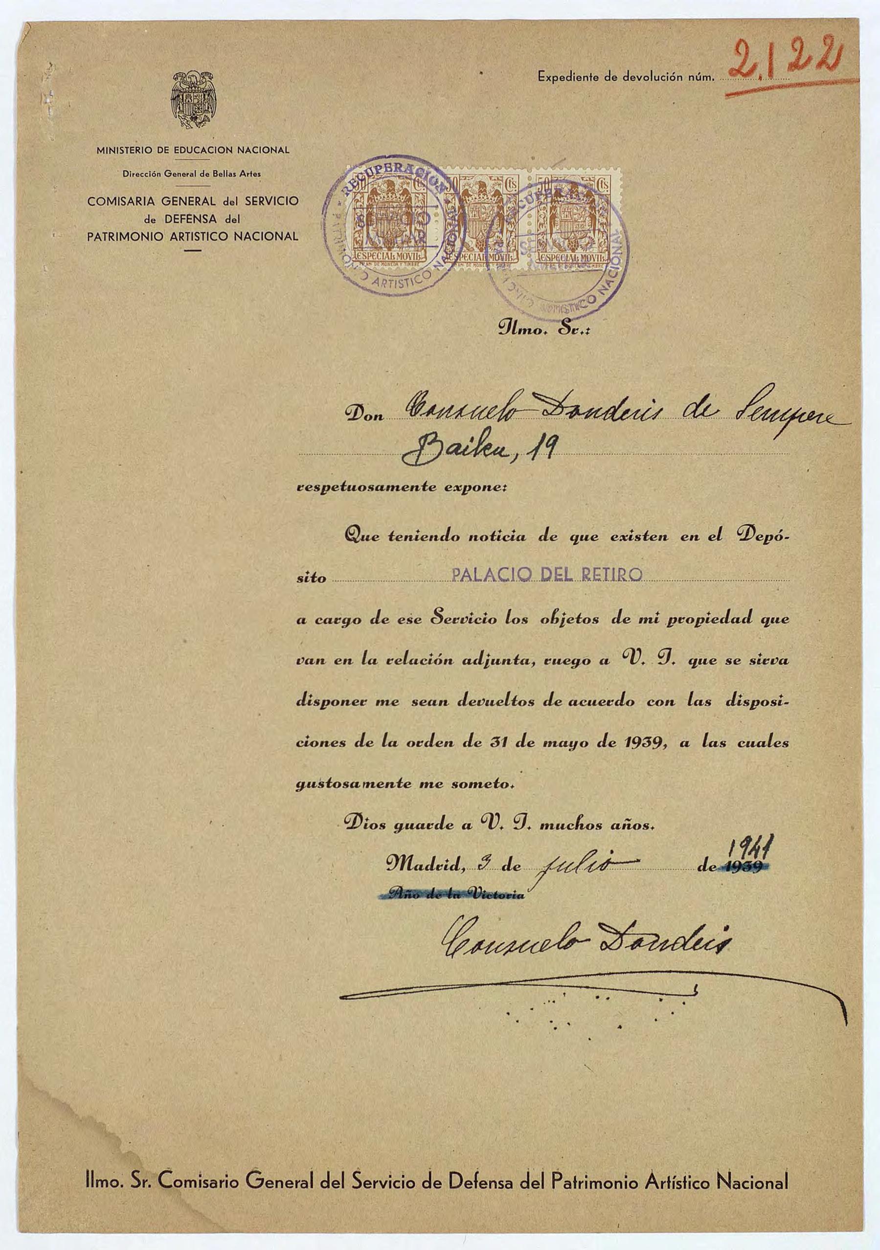 Expedientes de devolución de obras de arte