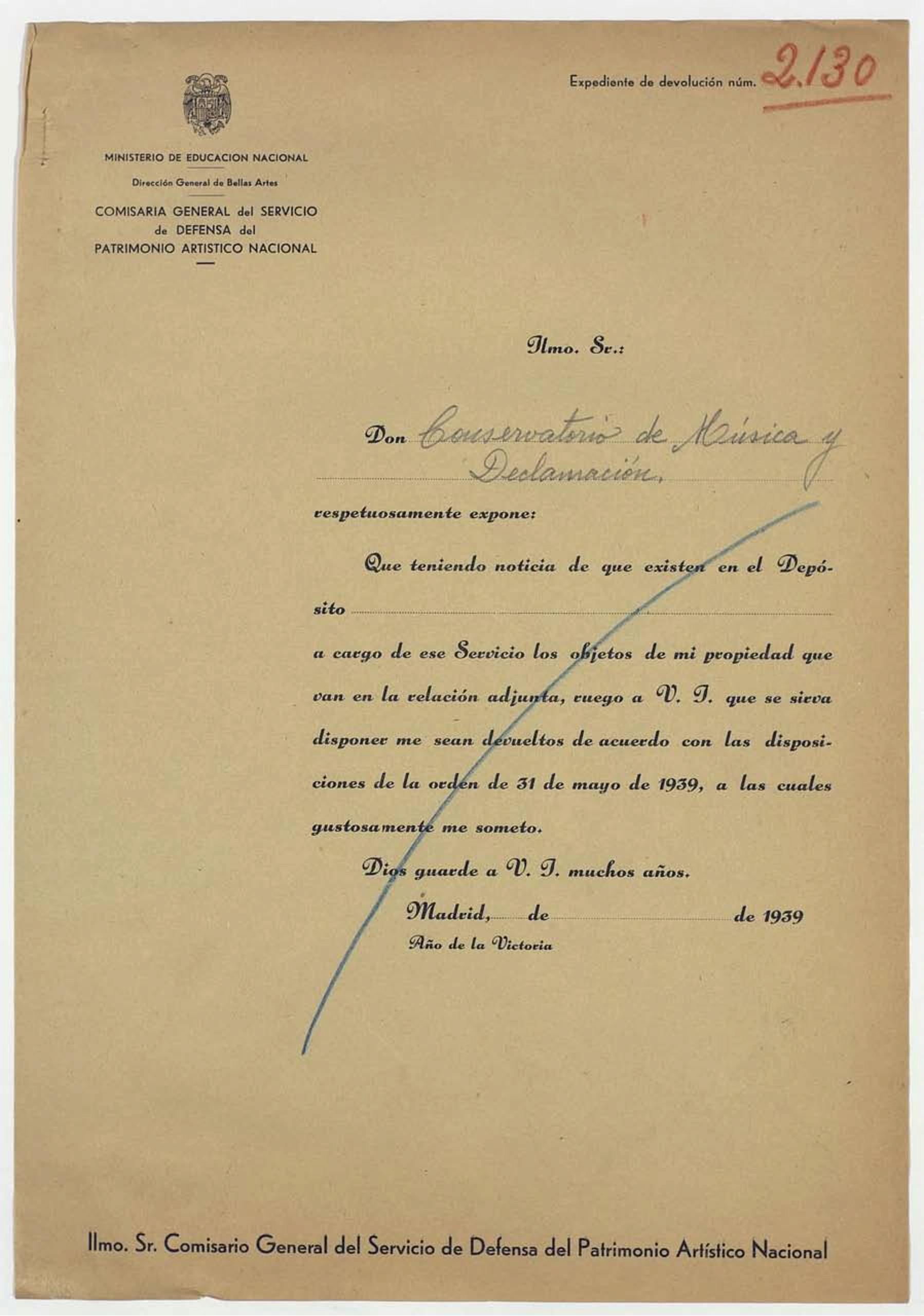 Expediente de devolución del Real Conservatorio de Música y Declamación