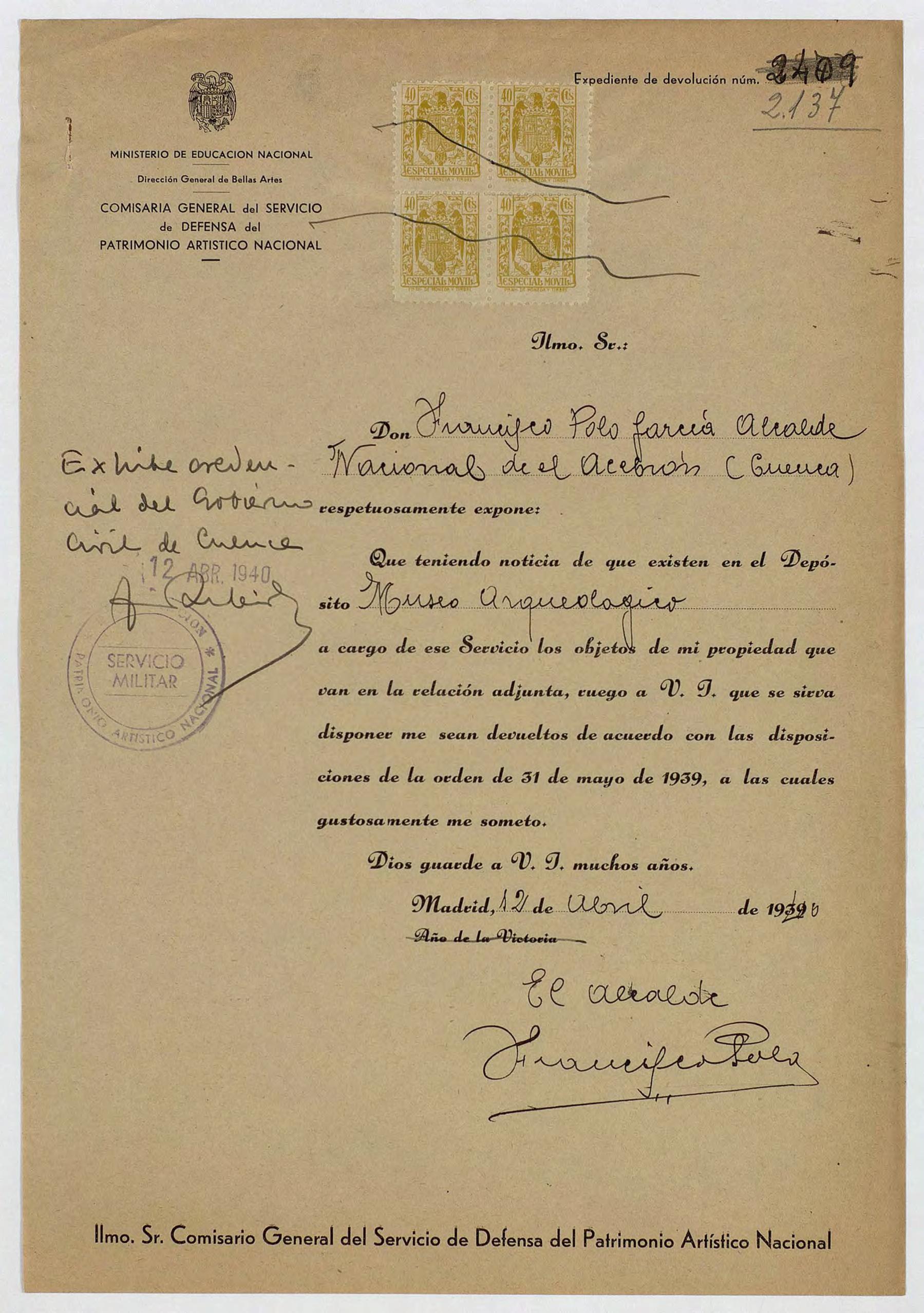 Expediente de devolución del Ayuntamiento de El Acebrón (Cuenca)