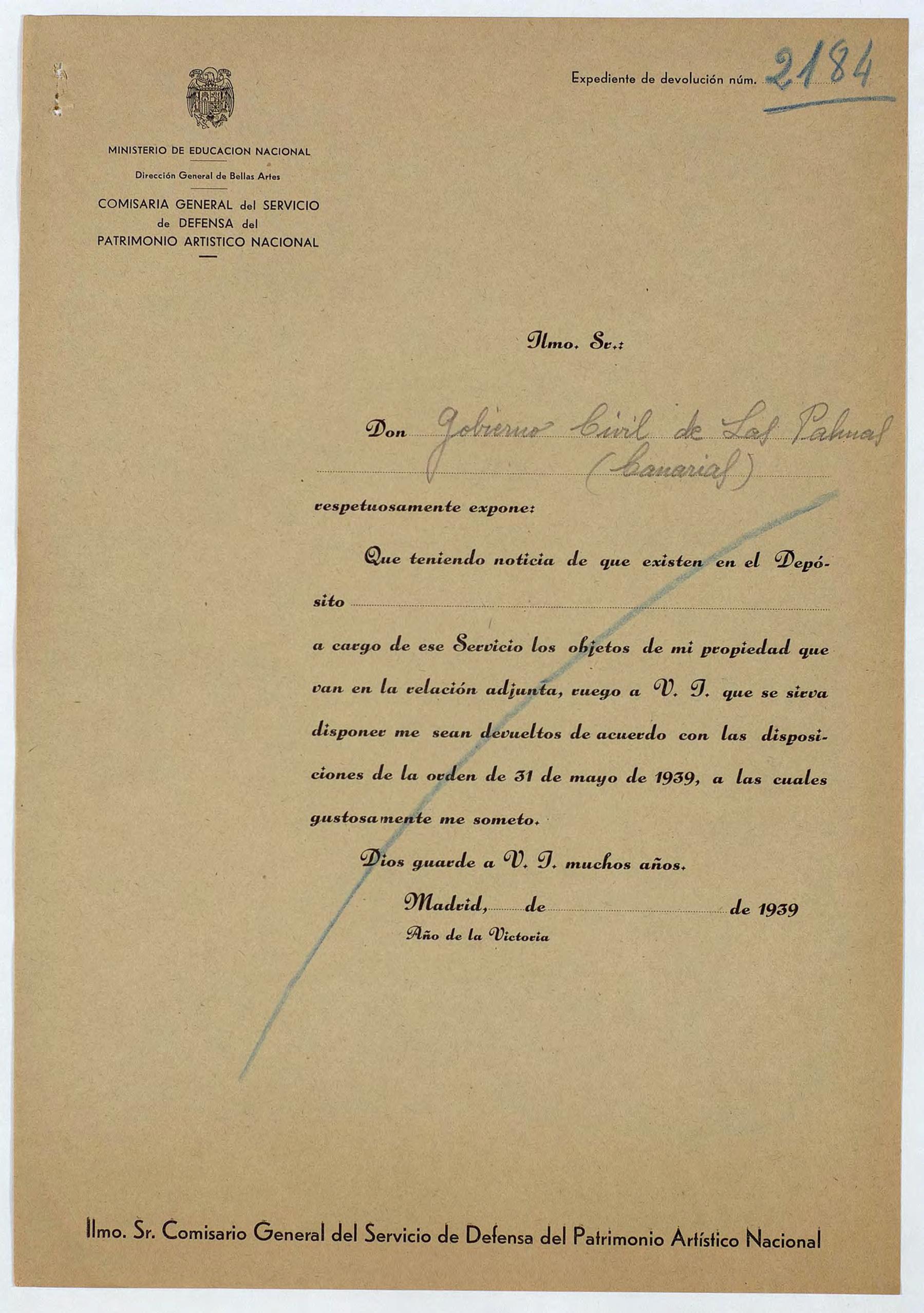 Expediente de devolución del Gobierno Civil de Las Palmas (Gran Canaria)