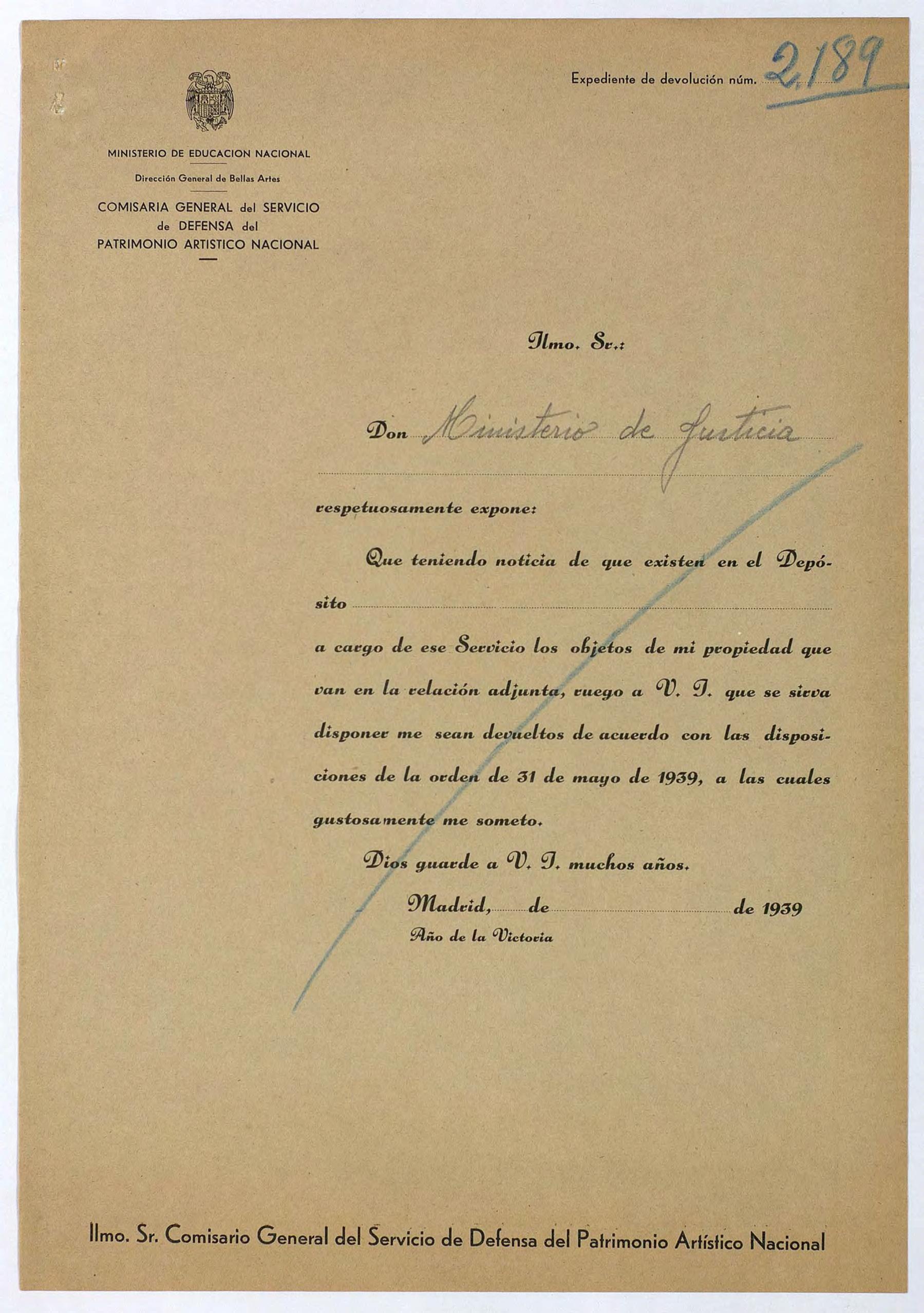 Expediente de devolución del Ministerio de Justicia