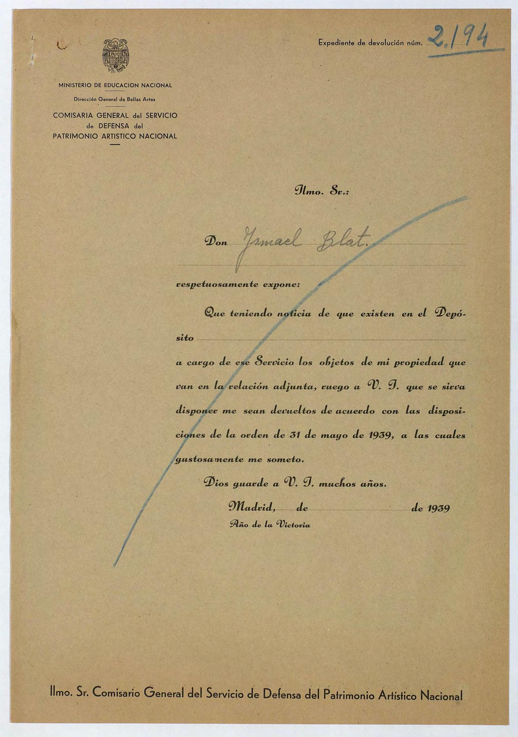 Expediente de devolución de Ismael Blat