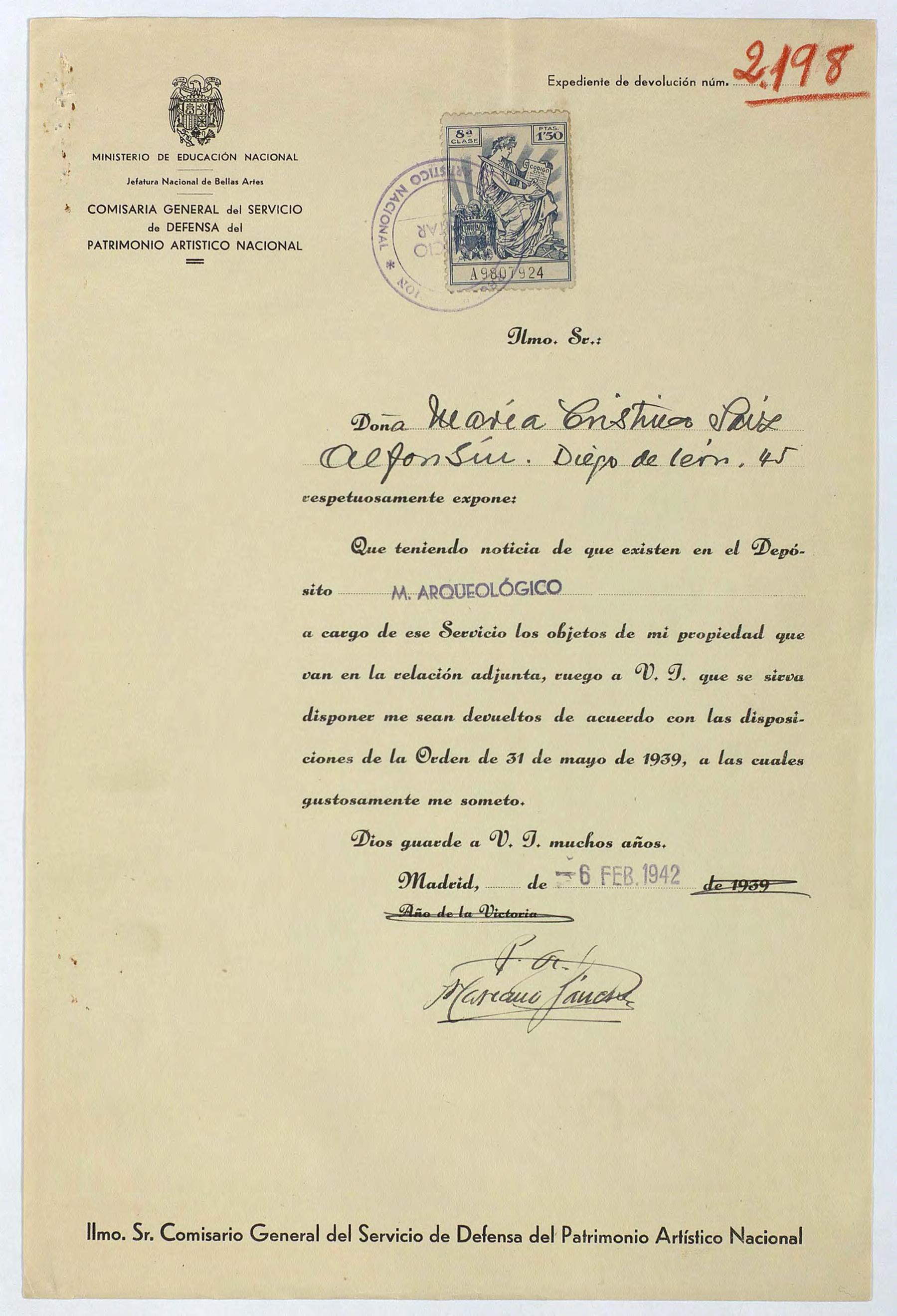 Expediente de devolución de María Cristina Sainz Alfonsín