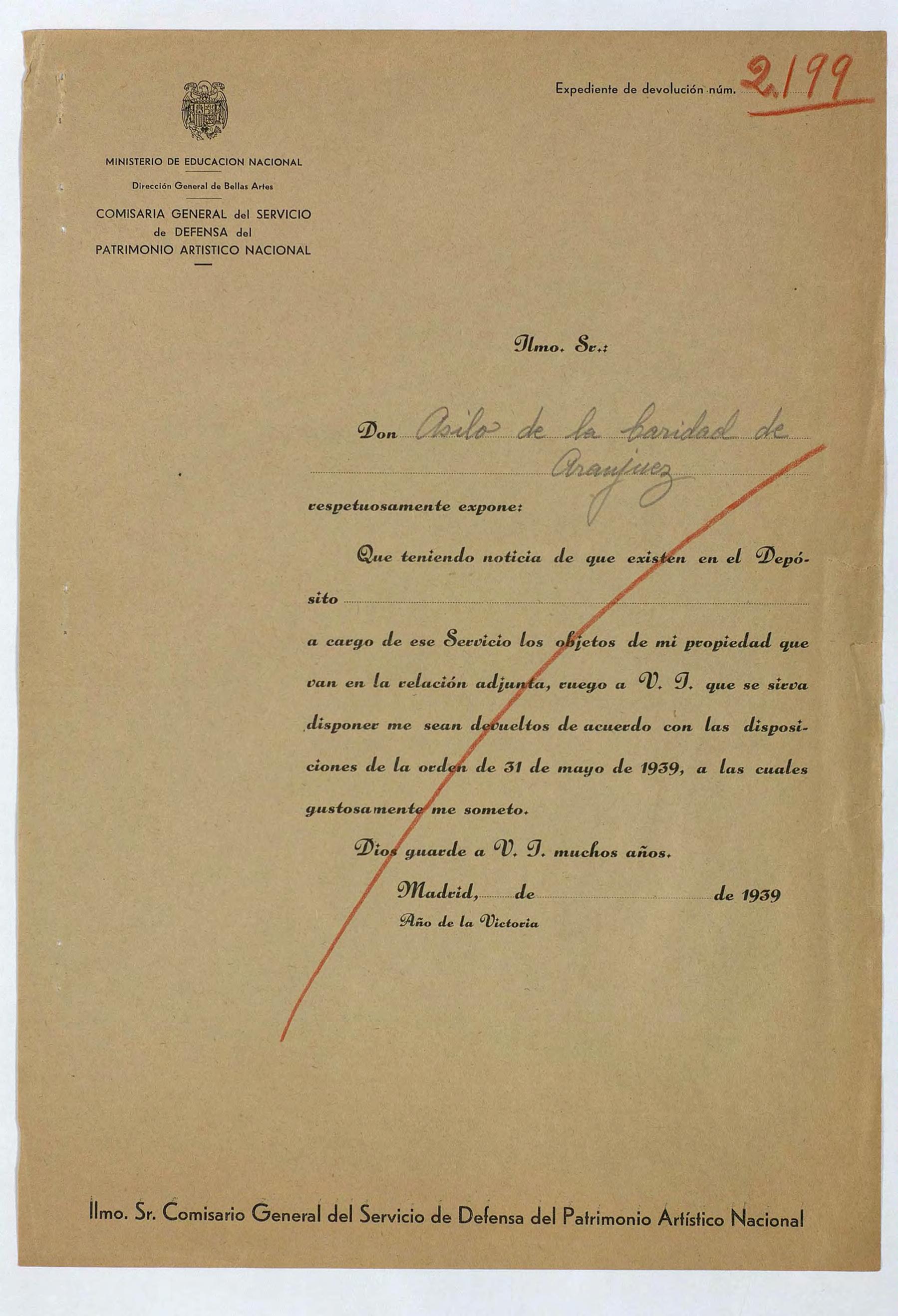 Expediente de devolución del Asilo de la Caridad de Aranjuez