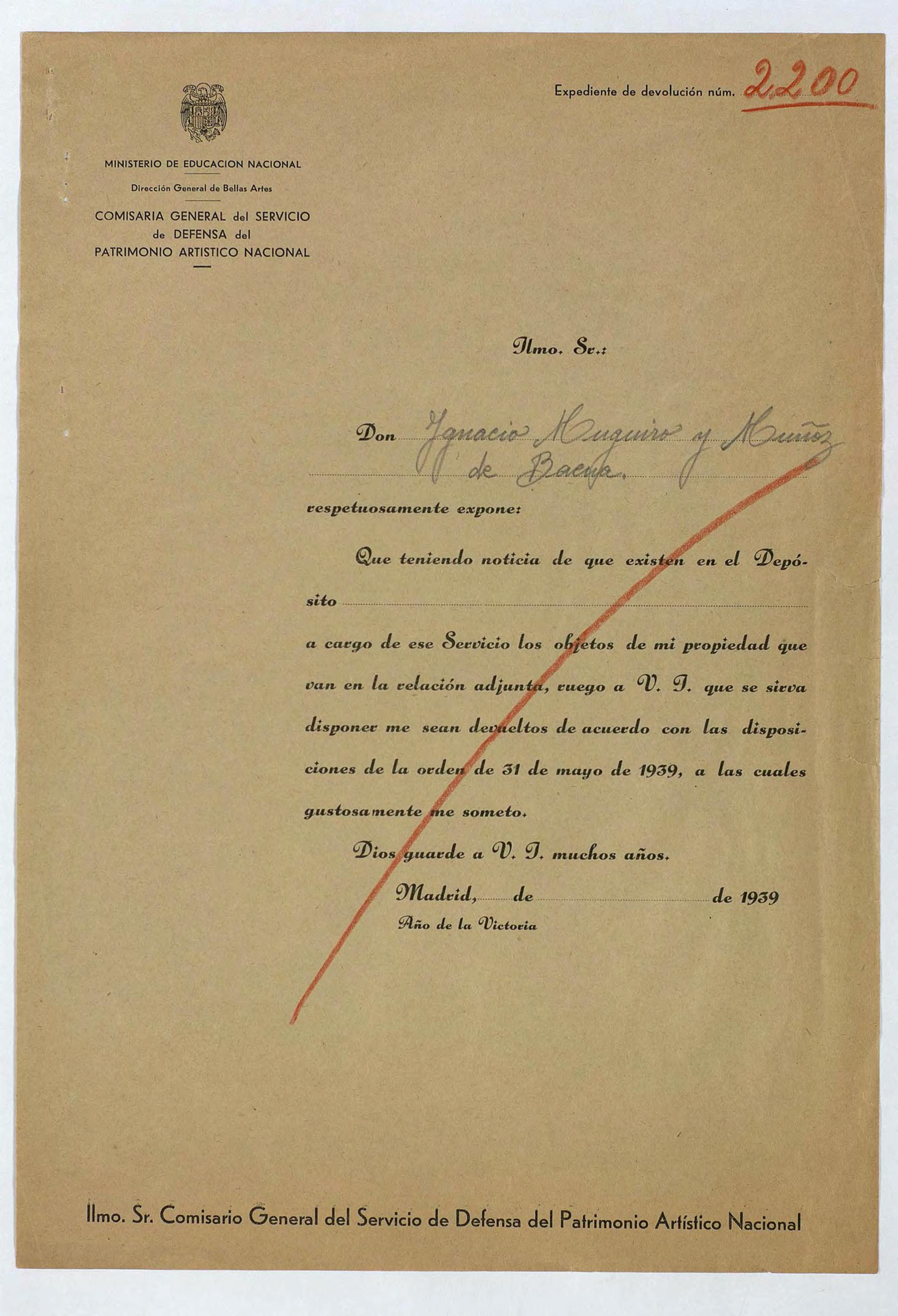 Expediente de devolución de Ignacio Muguiro y Muñoz de Baena