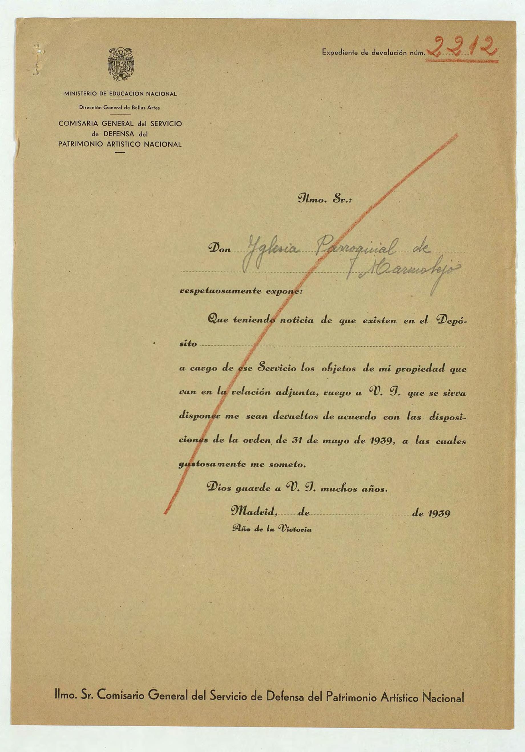 Expediente de devolución de la Parroquia de Nuestra Señora de la Paz de Marmolejo (Jaén)
