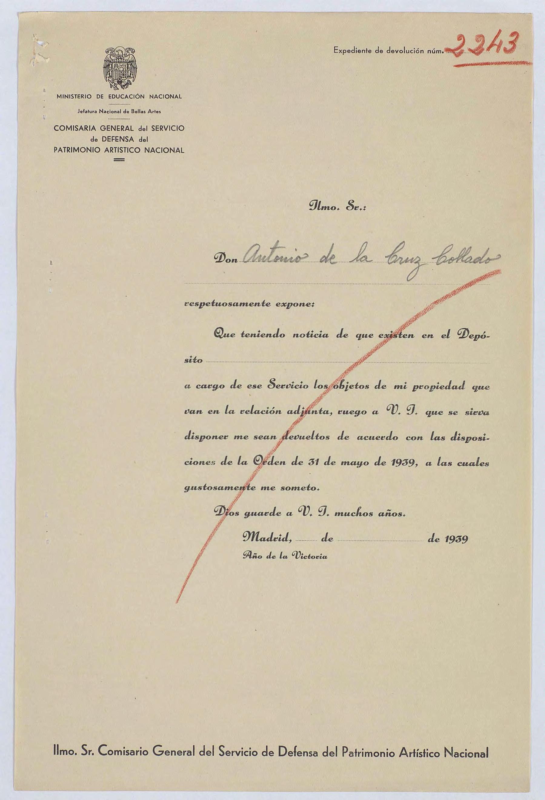 Expediente de devolución de Antonio de la Cruz Collado