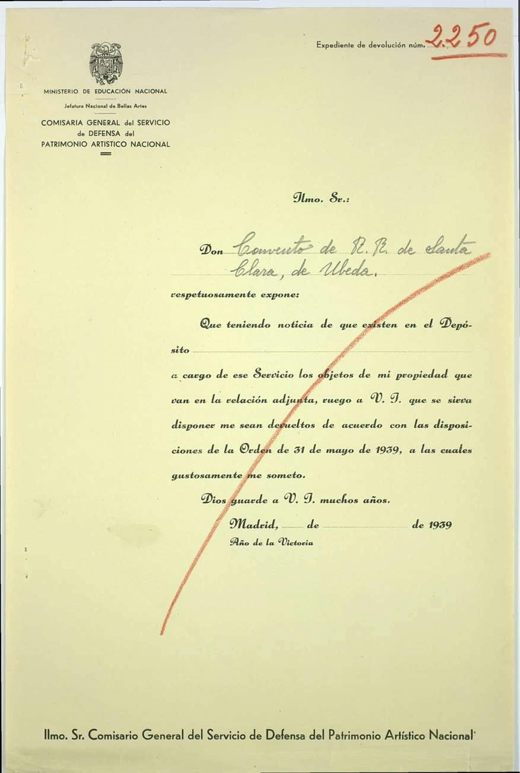 Expediente de devolución de la Iglesia del Salvador de Úbeda (Jaén)