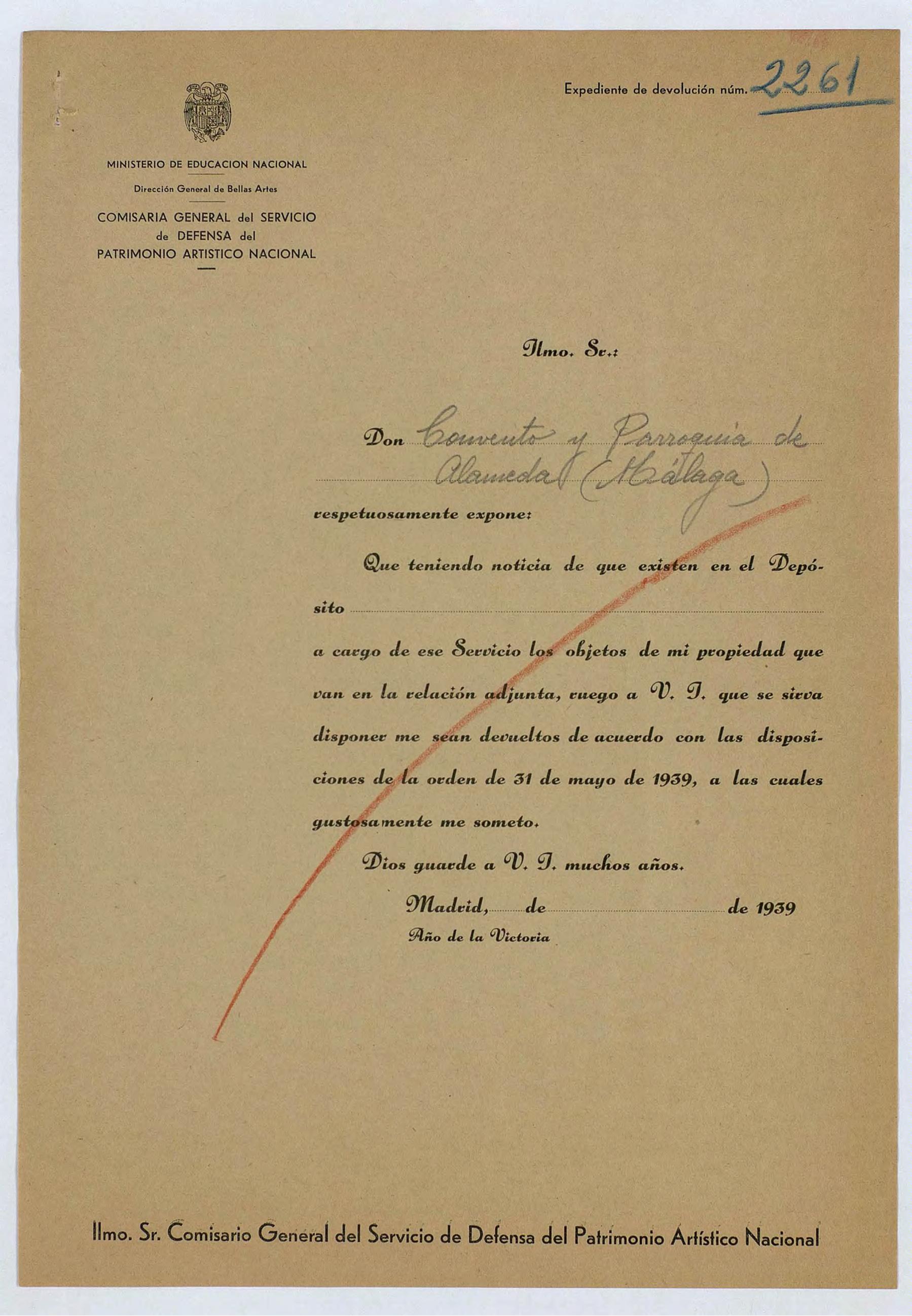 Expediente de devolución de la Parroquia de la Purísima Concepción de Alameda (Málaga)
