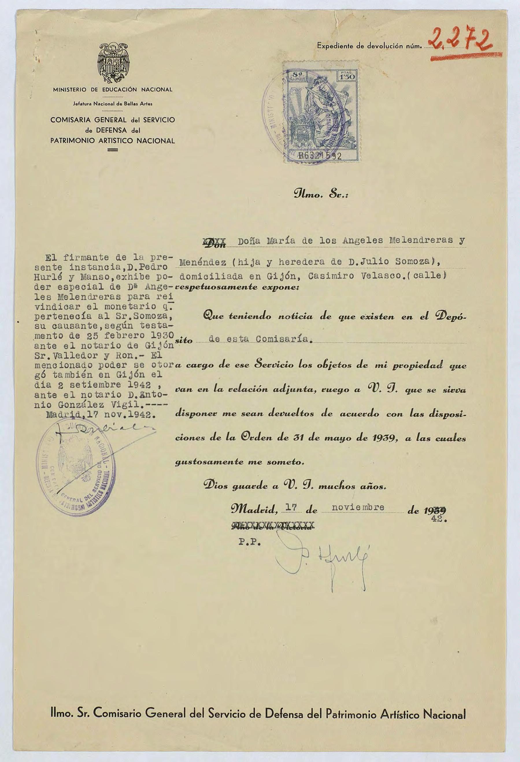Expediente de devolución de María de los Ángeles Melendreras y Menéndez