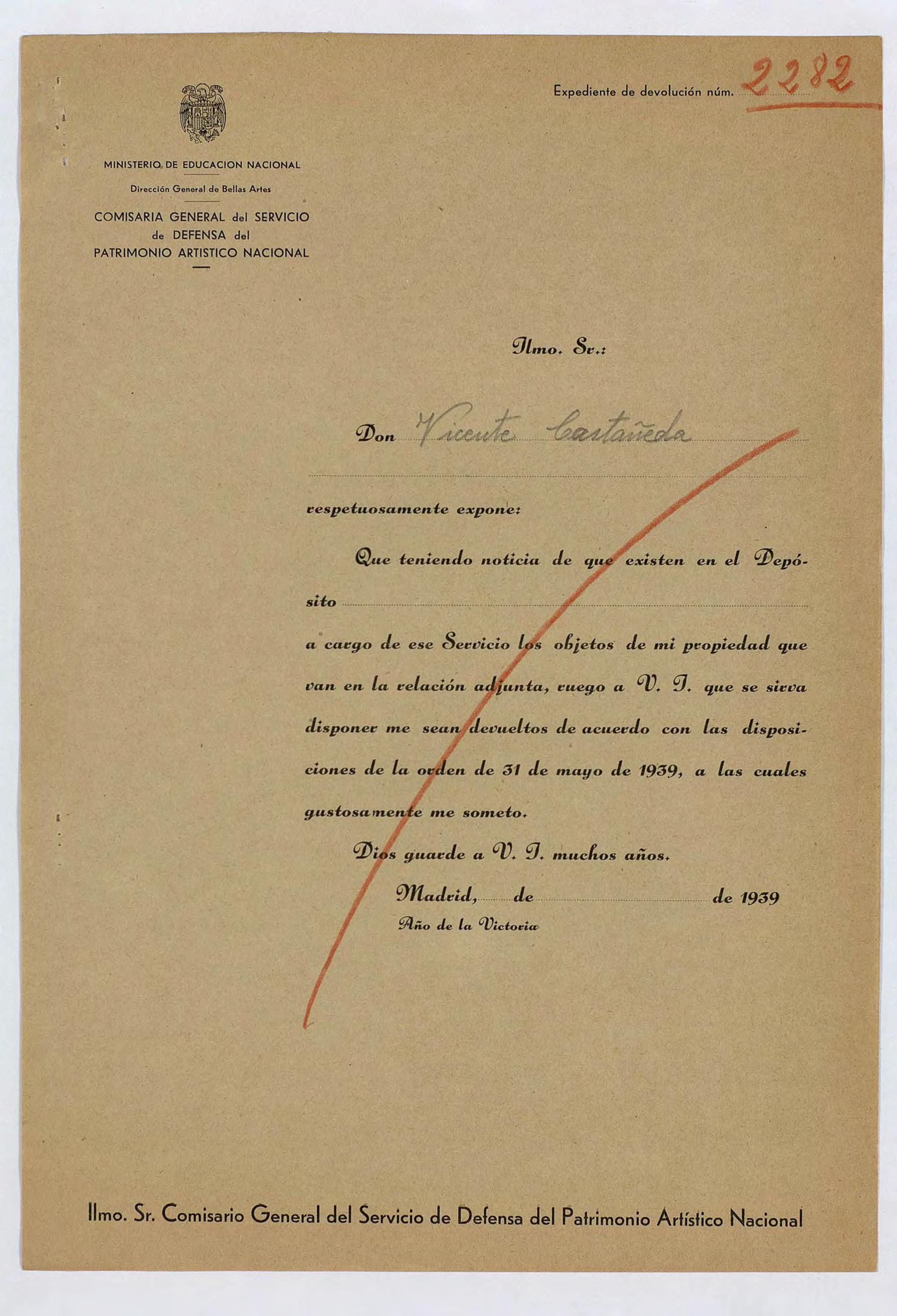 Expediente de devolución de Vicente Castañeda