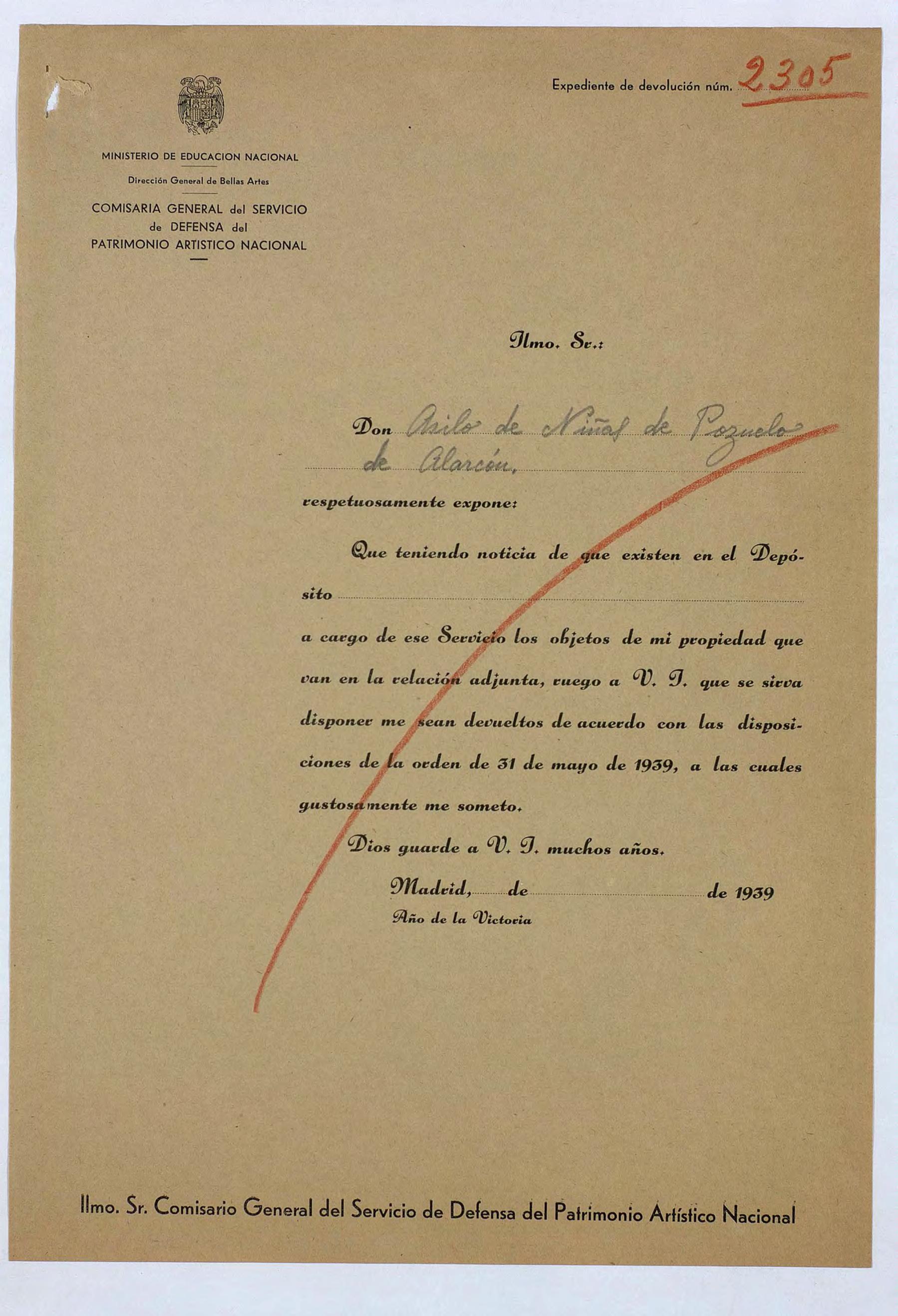 Expediente de devolución del Asilo de Niñas Desamparadas de Pozuelo de Alarcón (Madrid)