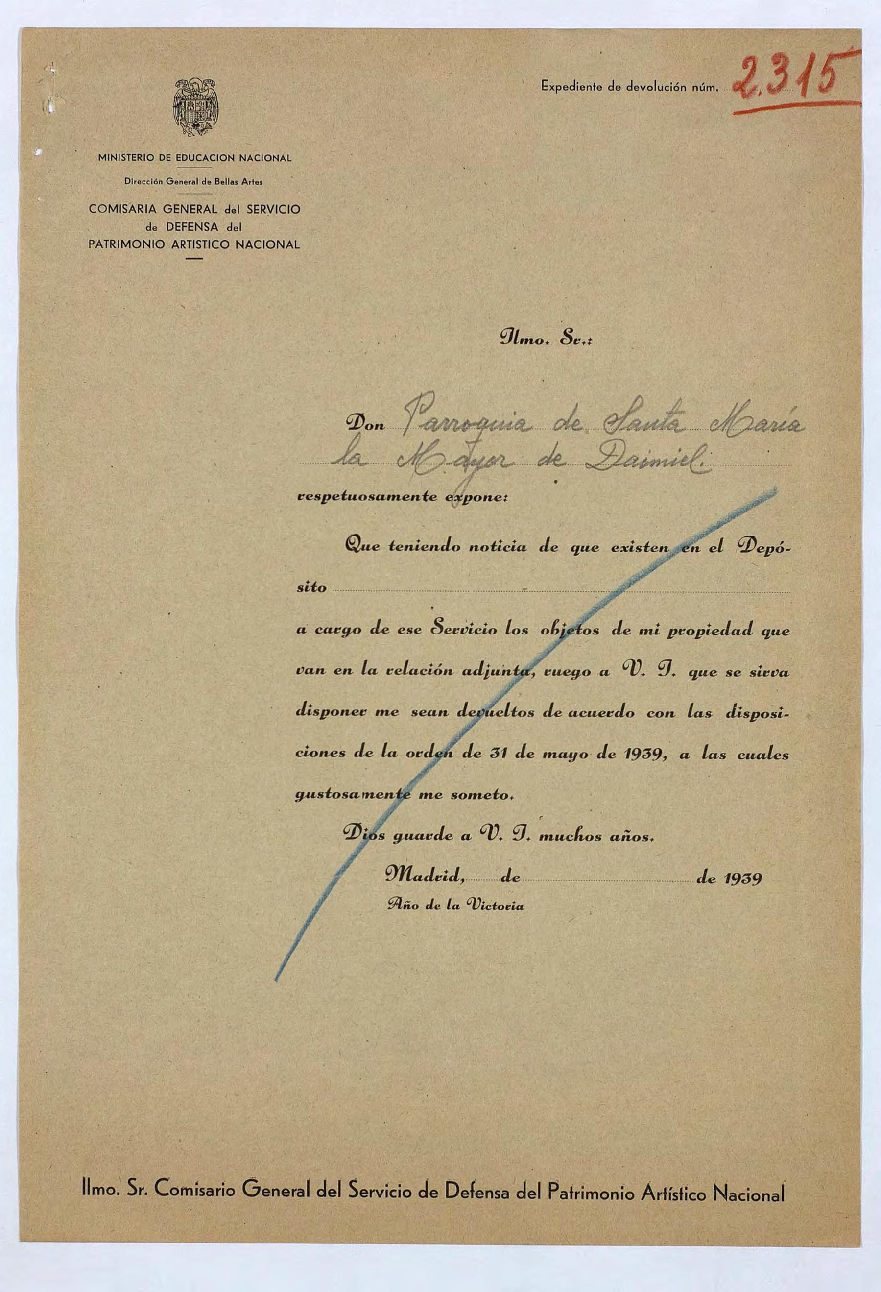 Expediente de devolución de la Parroquia de Santa María la Mayor de Daimiel (Ciudad Real)