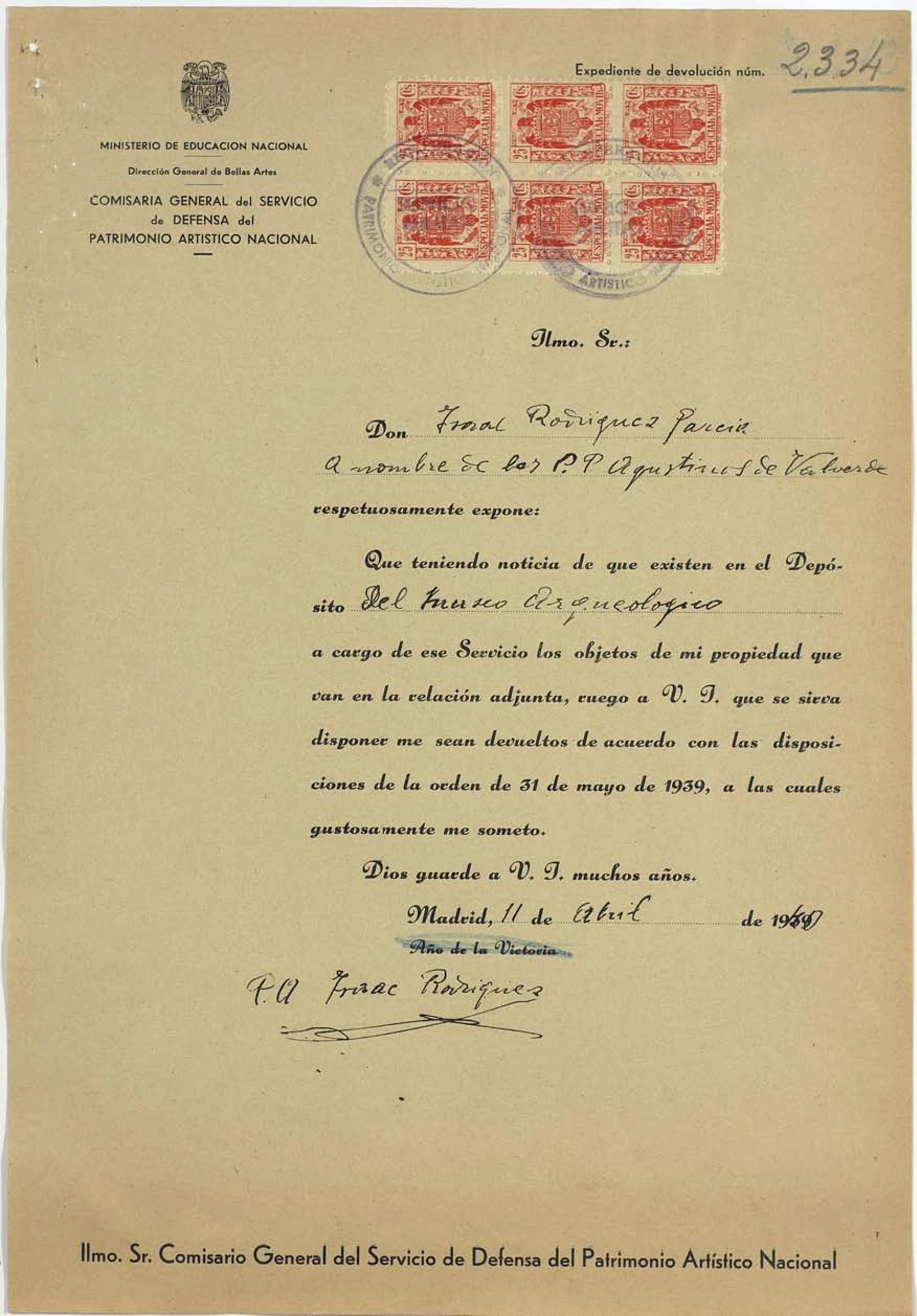 Expediente de devolución del Colegio de San Pablo - Convento de Padres Agustinos de Madrid