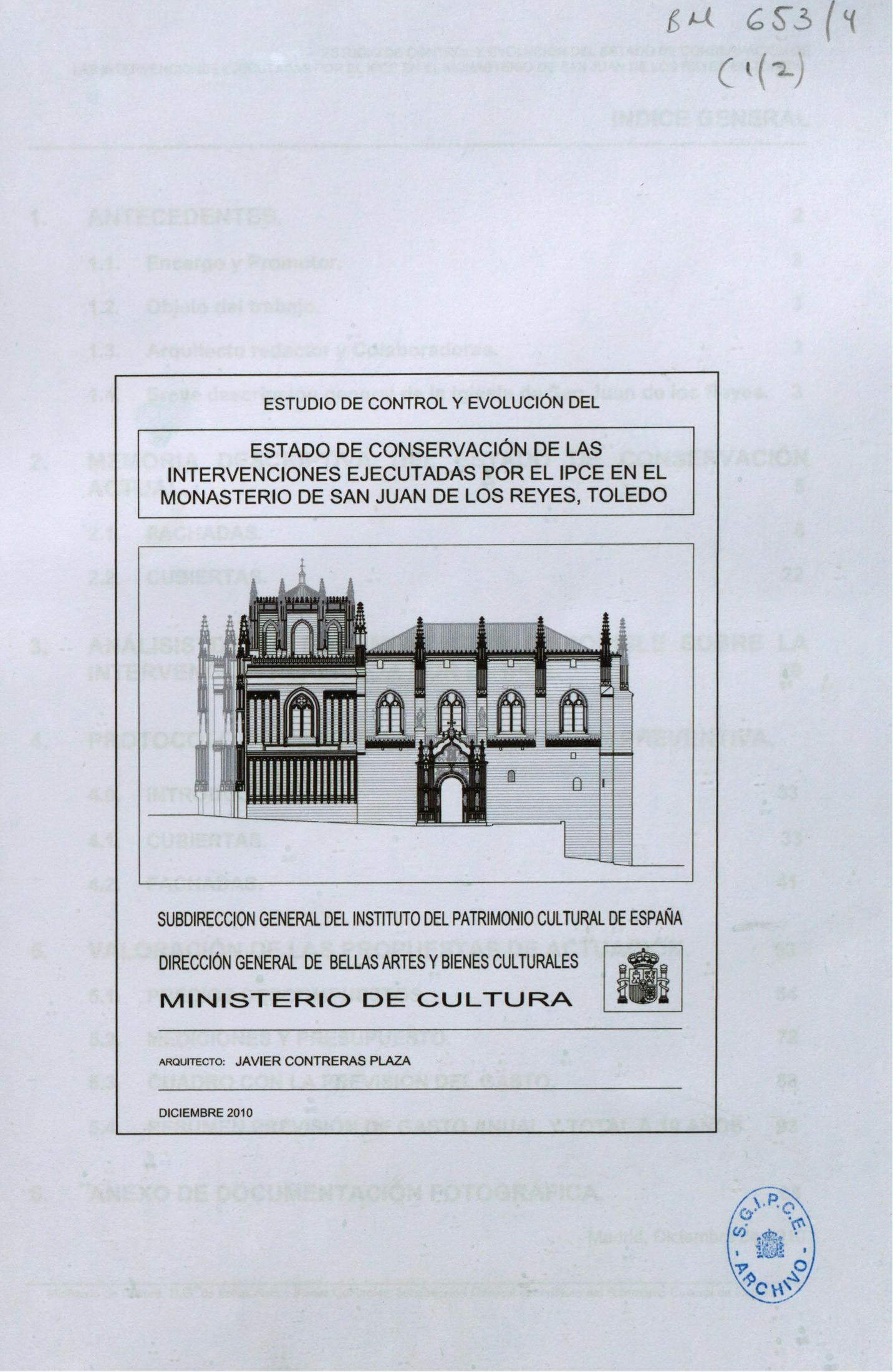 Estudio de restauración de las intervenciones ejecutadas por el IPCE en el Monasterio de San Juan de los Reyes de Toledo