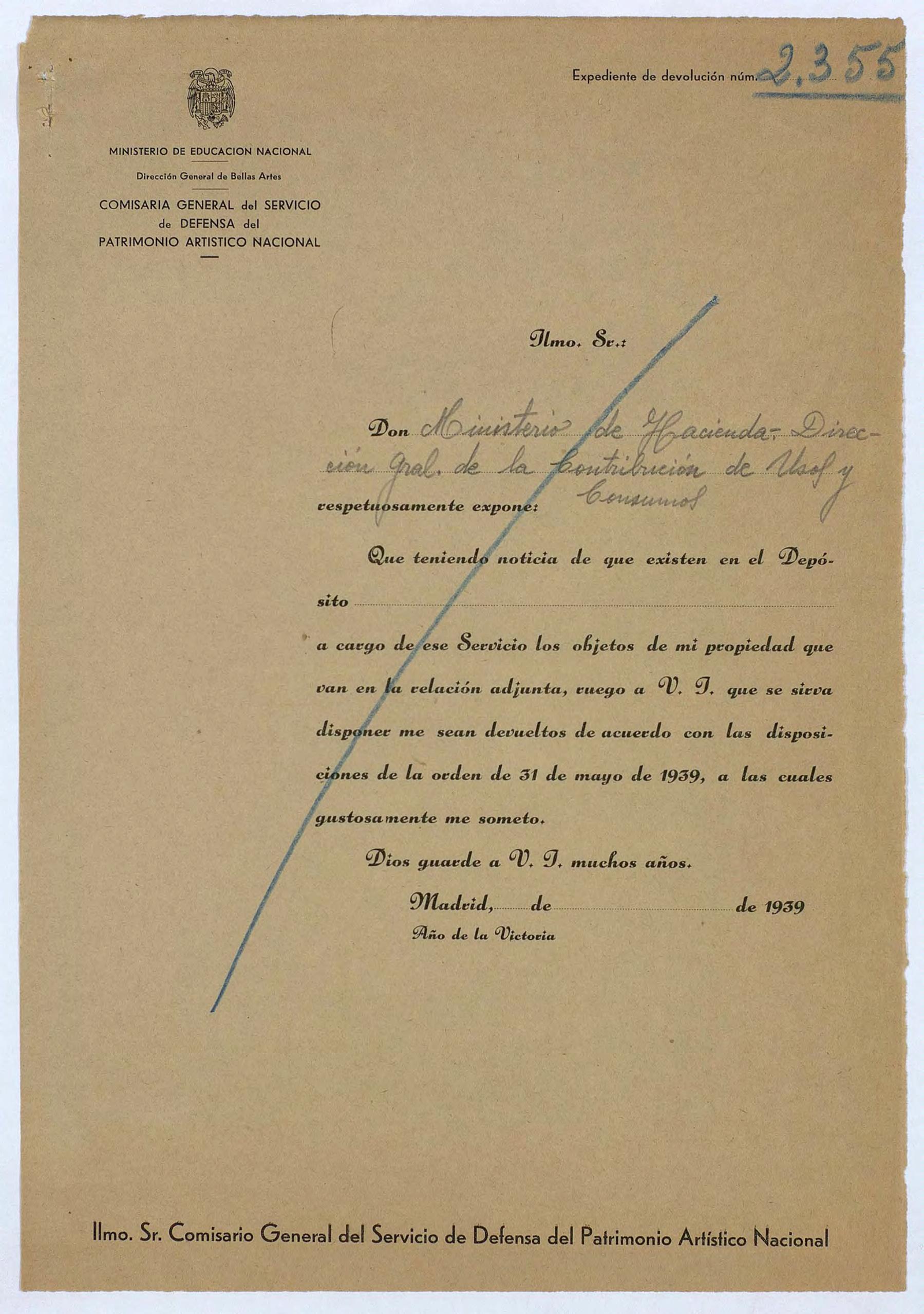 Expediente de devolución del Ministerio de Hacienda