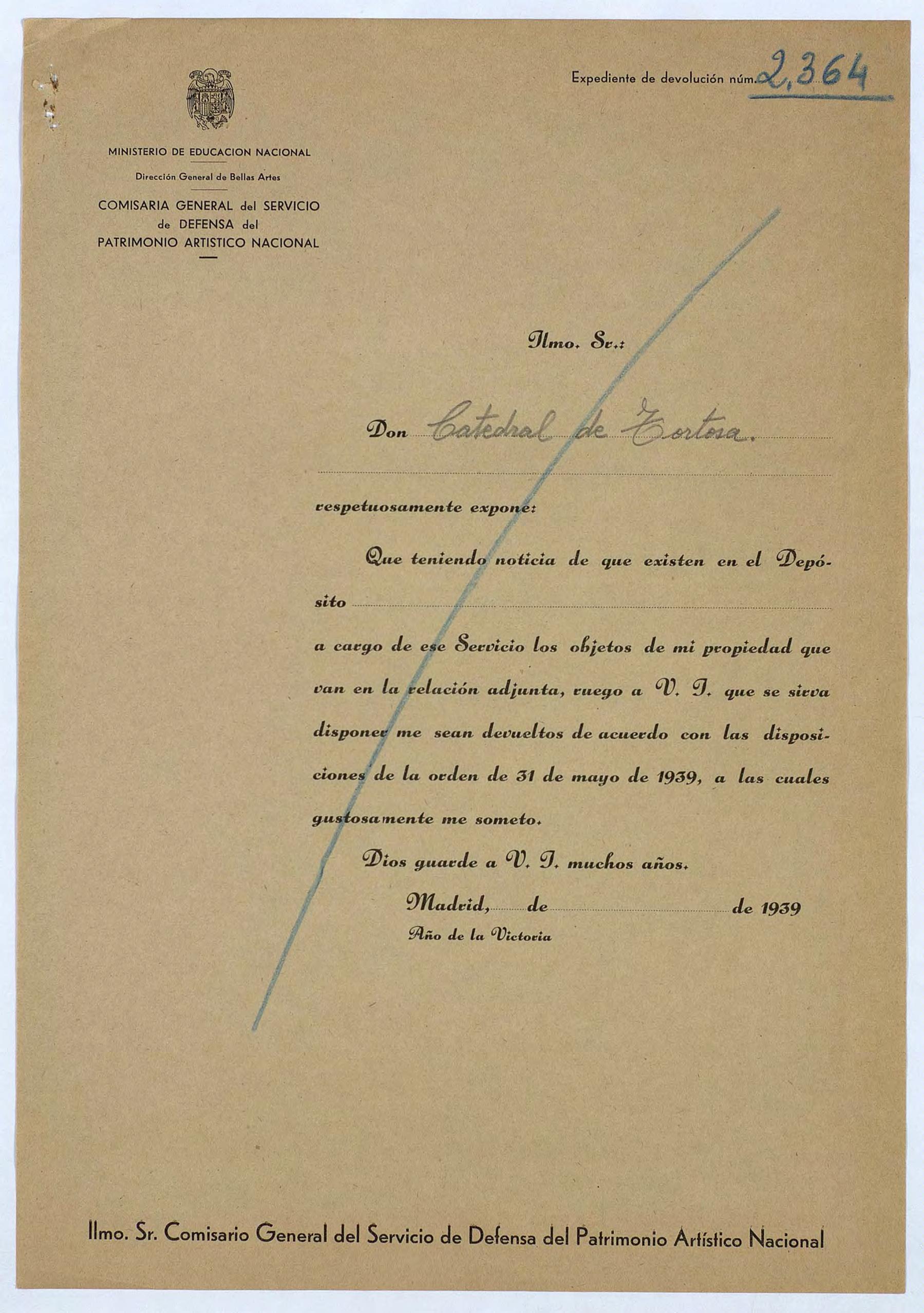 Expediente de devolución de la Catedral de Tortosa (Tarragona)
