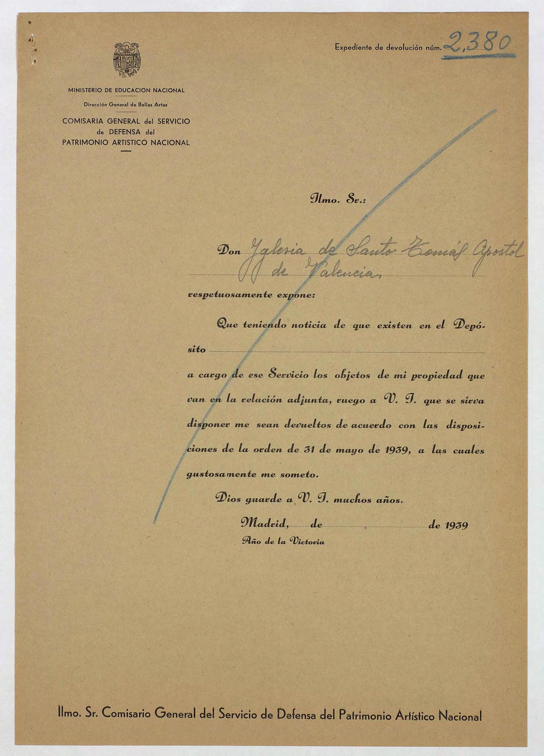 Expediente de devolución de la Parroquia de Santo Tomás Apóstol y San Felipe Neri de Valencia