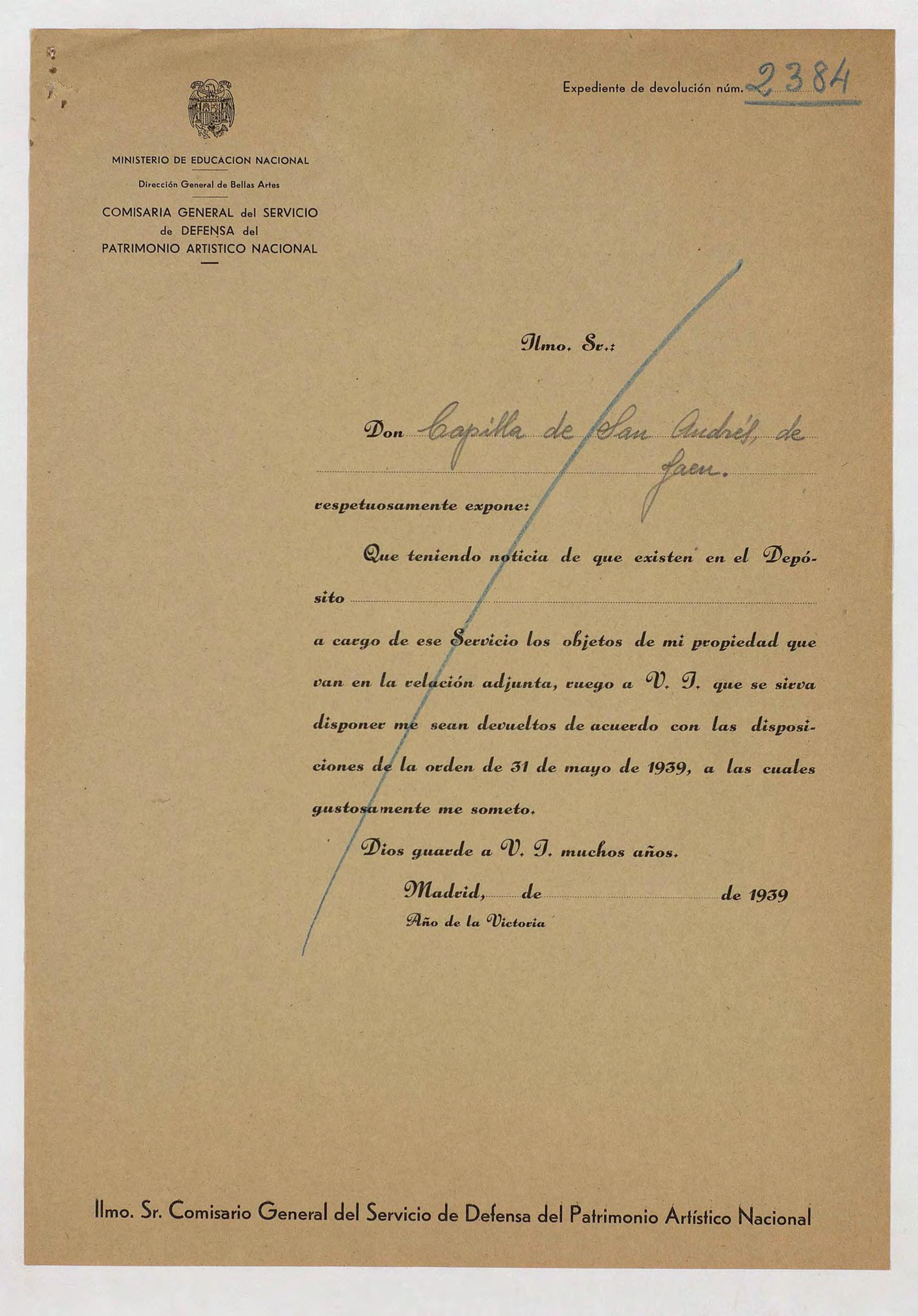 Expediente de devolución de la Santa Capilla de San Andrés de Jaén