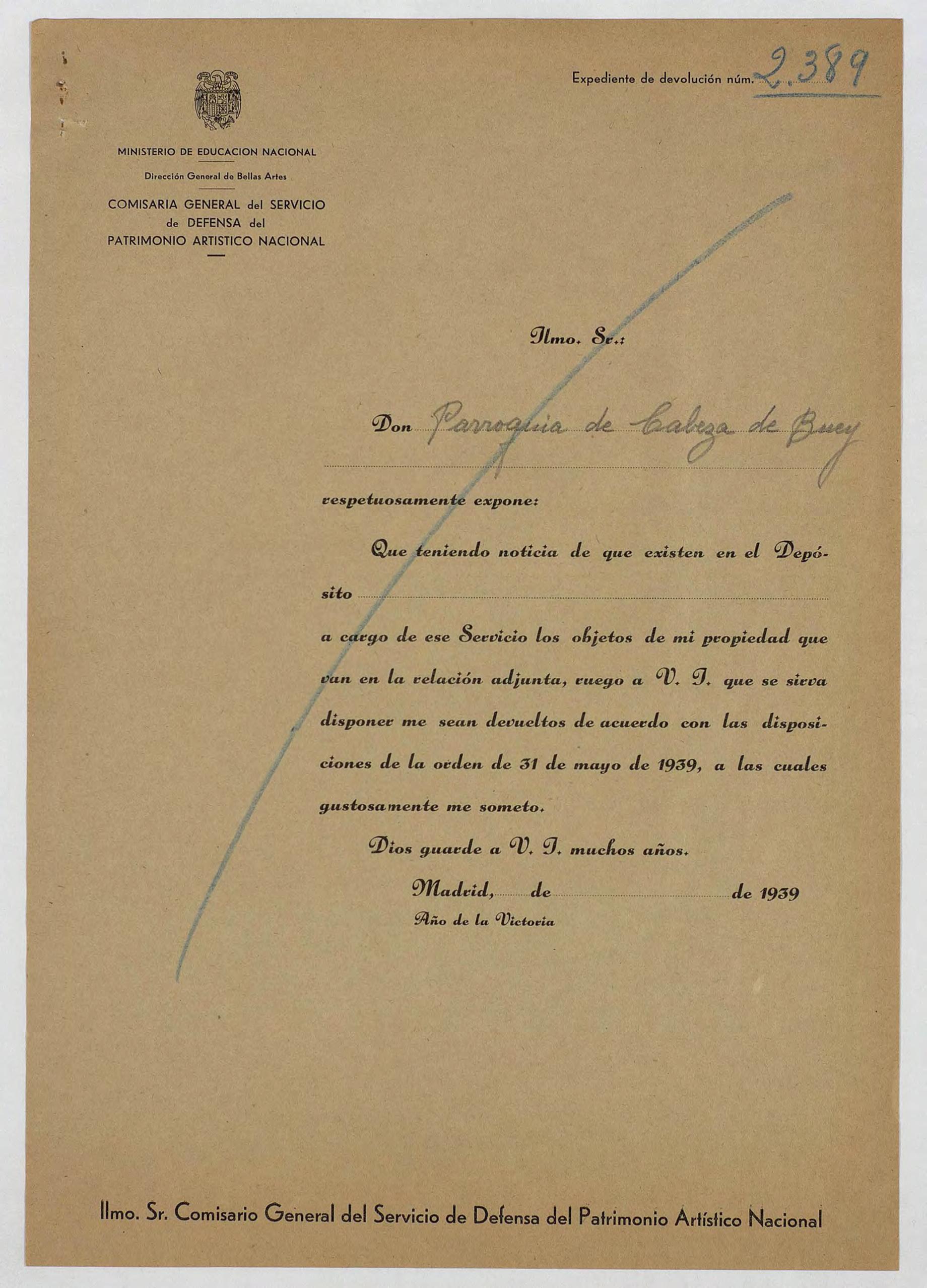 Expediente de devolución de la Parroquia de Nuestra Señora de Armentera de Cabeza del Buey (Badajoz)