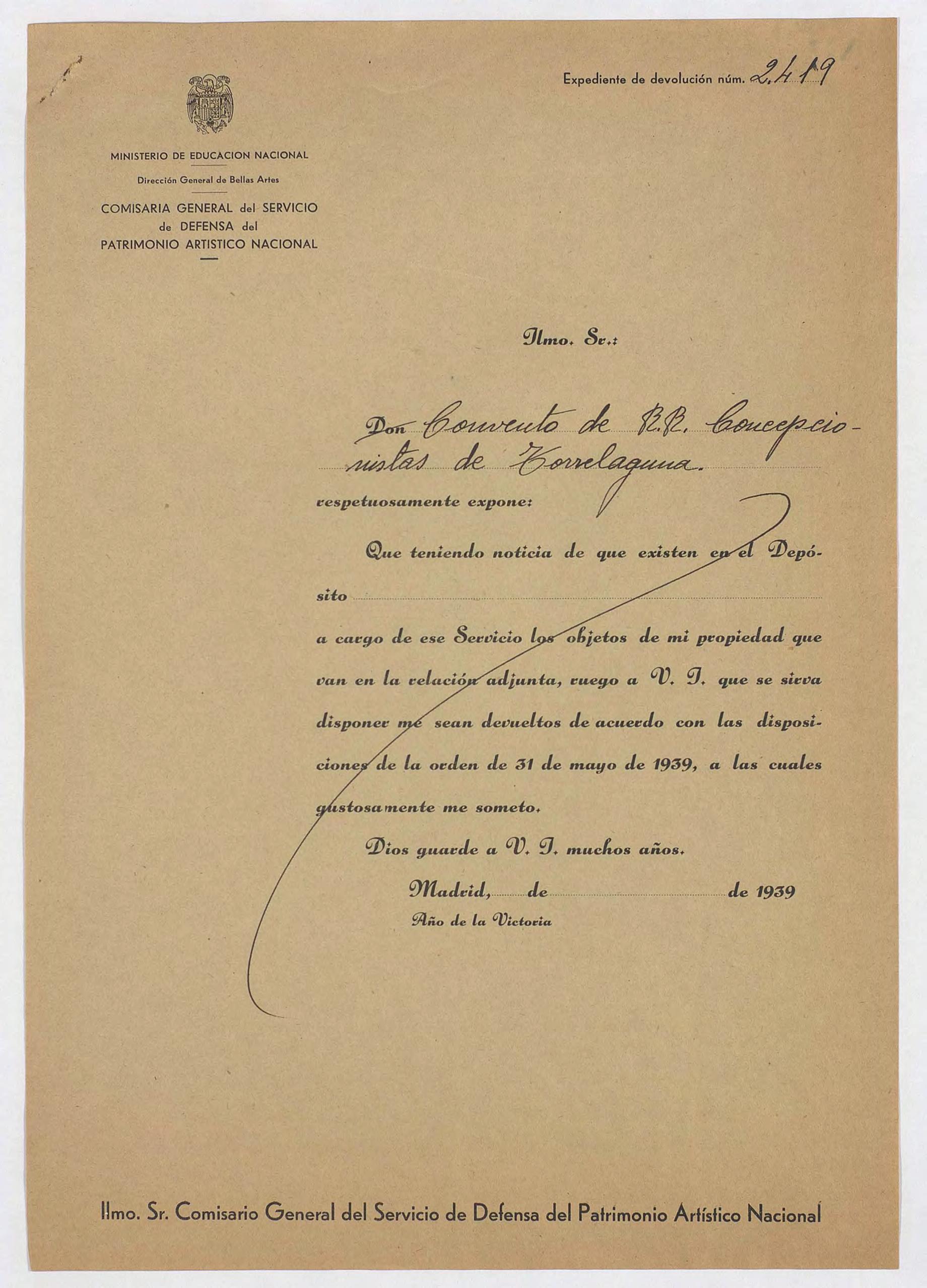 Expediente de devolución del Convento de Religiosas Concepcionistas de Torrelaguna (Madrid)