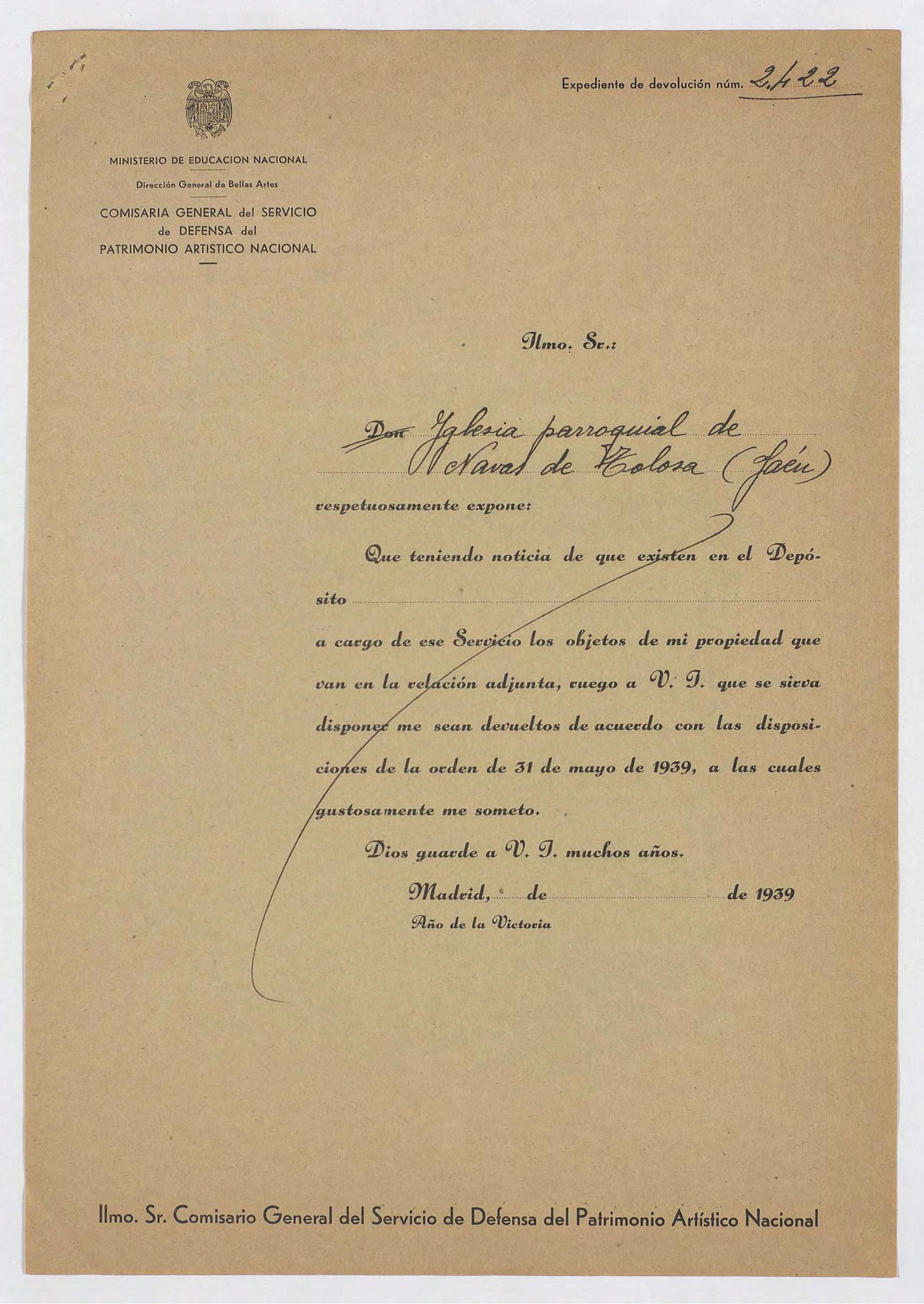 Expediente de devolución de la Iglesia Parroquial de Navas de Tolosa (Jaén)