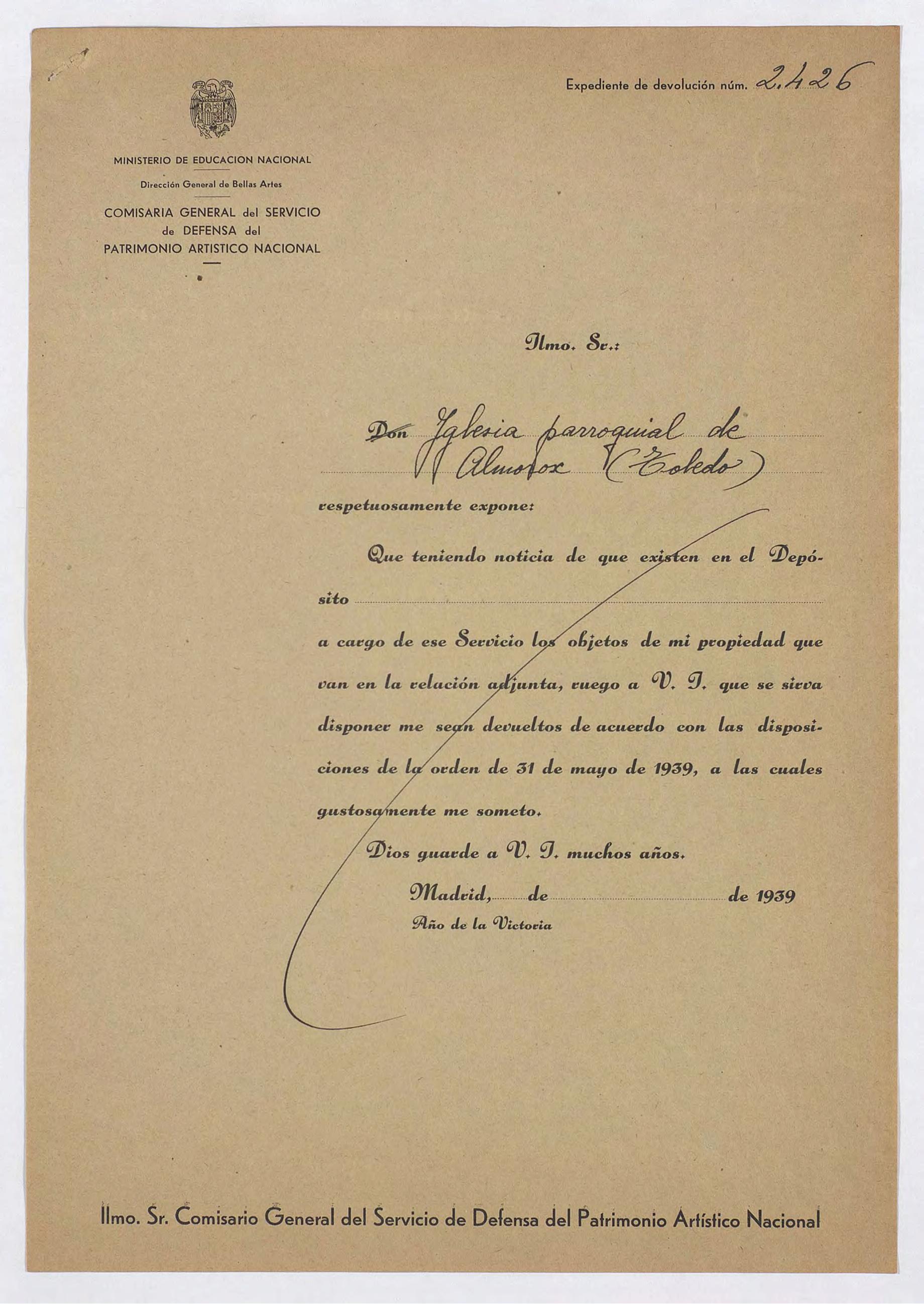 Expediente de devolución de la Iglesia Parroquial de Almorox (Toledo)